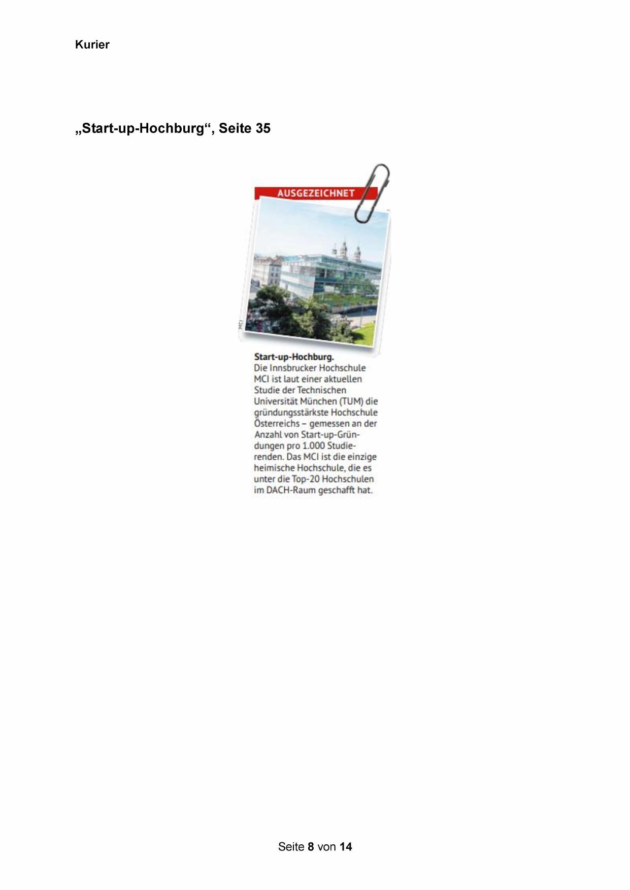 Anzahl von Start-up-Gründungen pro 1.000 Studierenden. Das MCI ist die einzige