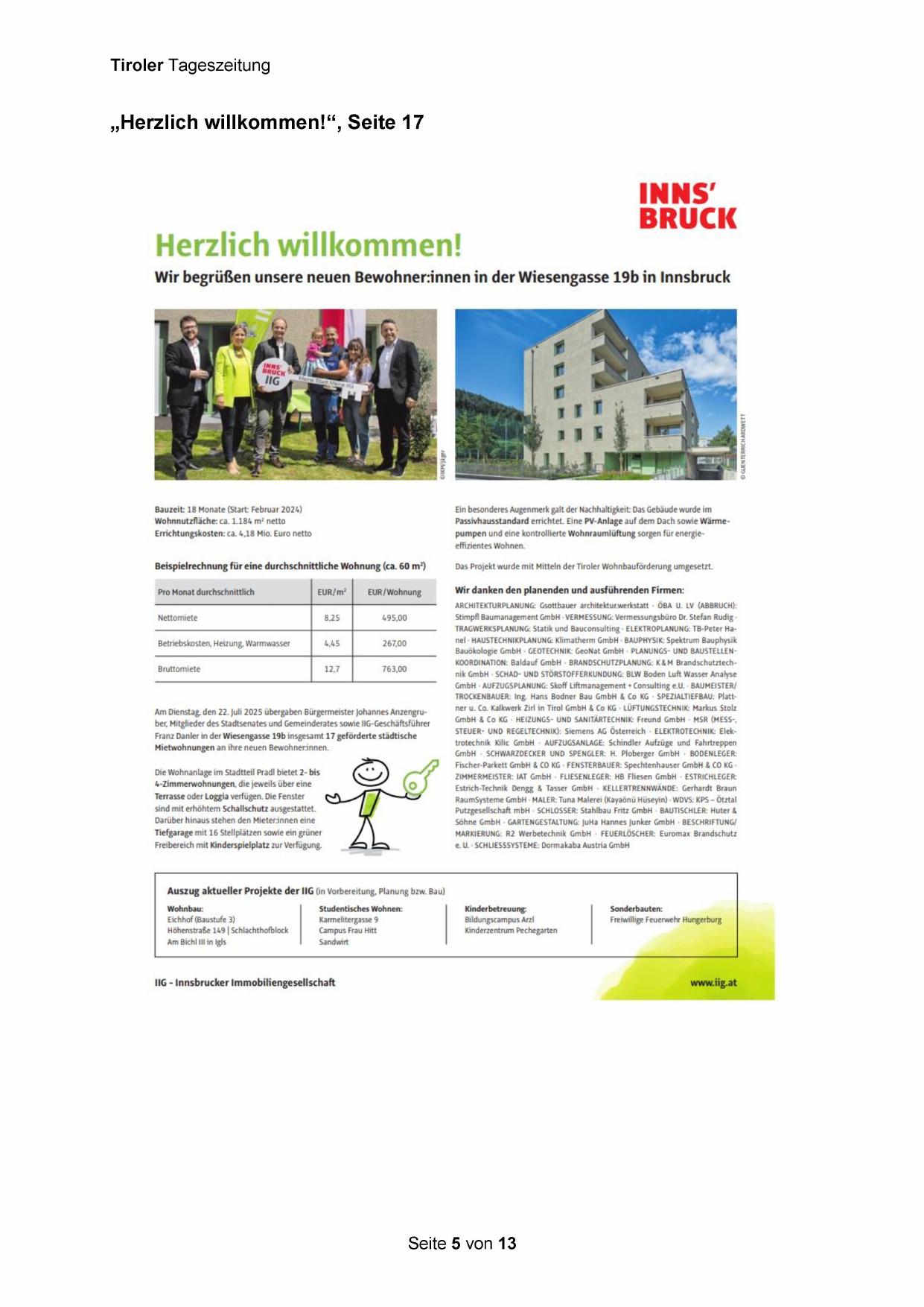 Wir begrüßen unsere neuen Bewohner:innen in der Wiesengasse 19b in Innsbruck