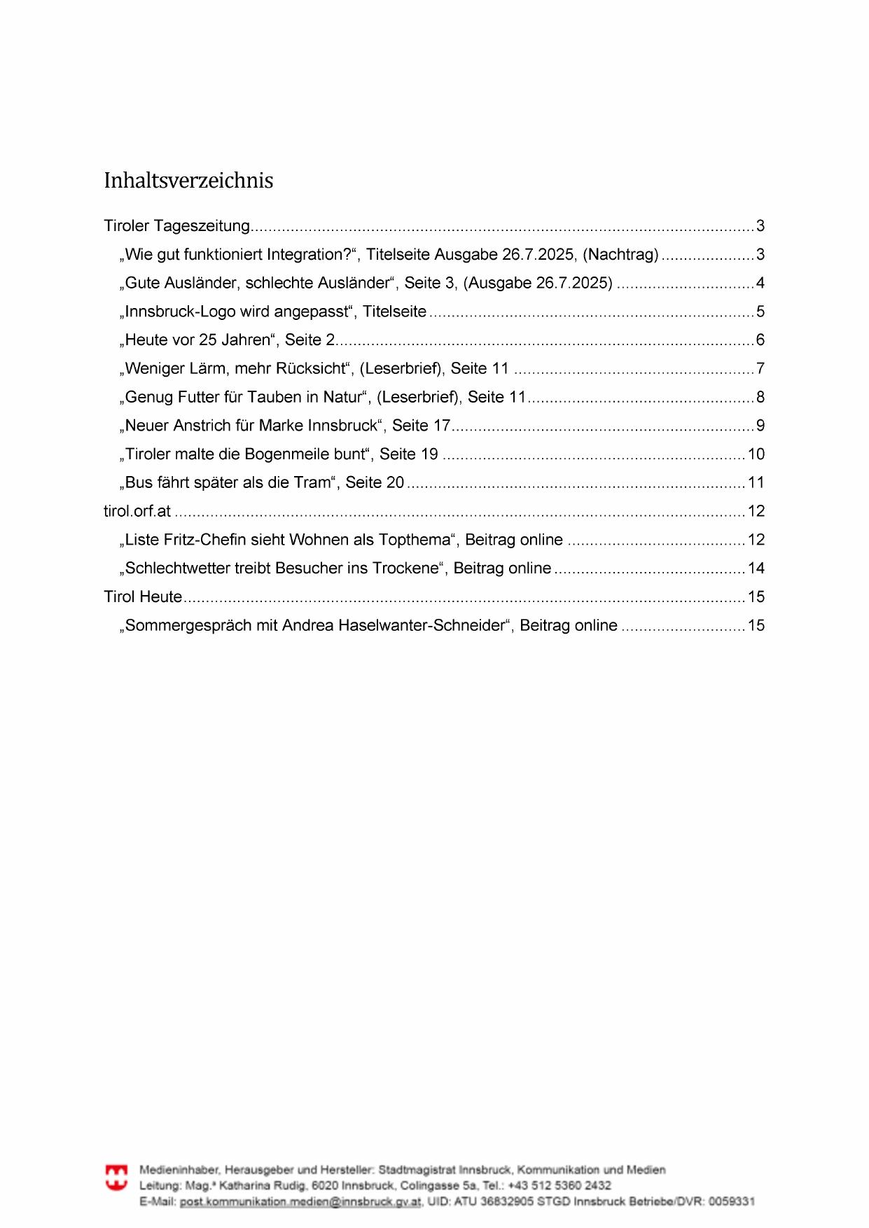 „Wie gut funktioniert Integration?“, Titelseite Ausgabe 26.7.2025, (Nachtrag)..................... 3