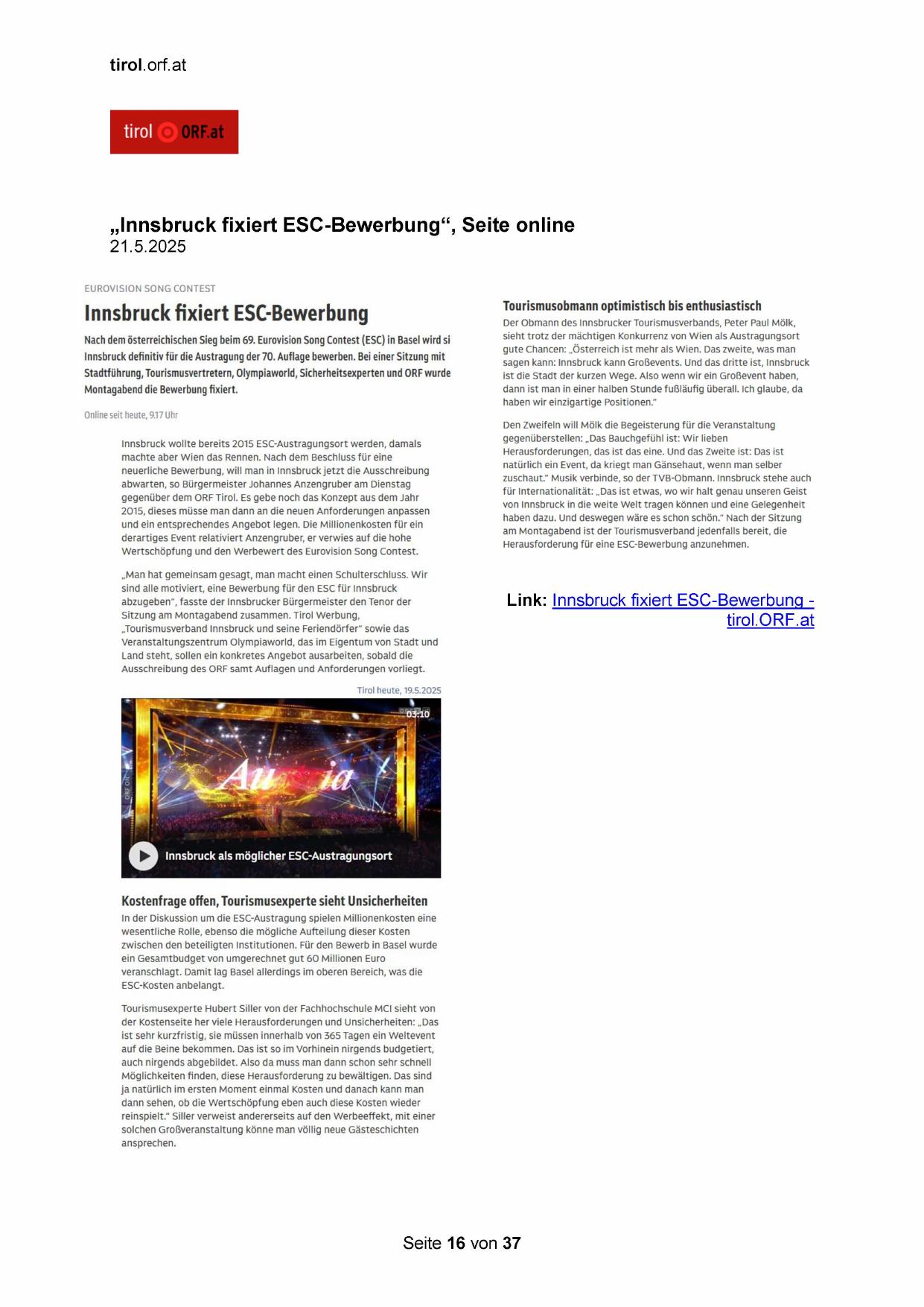 „Innsbruck fixiert ESC-Bewerbung“, Seite online