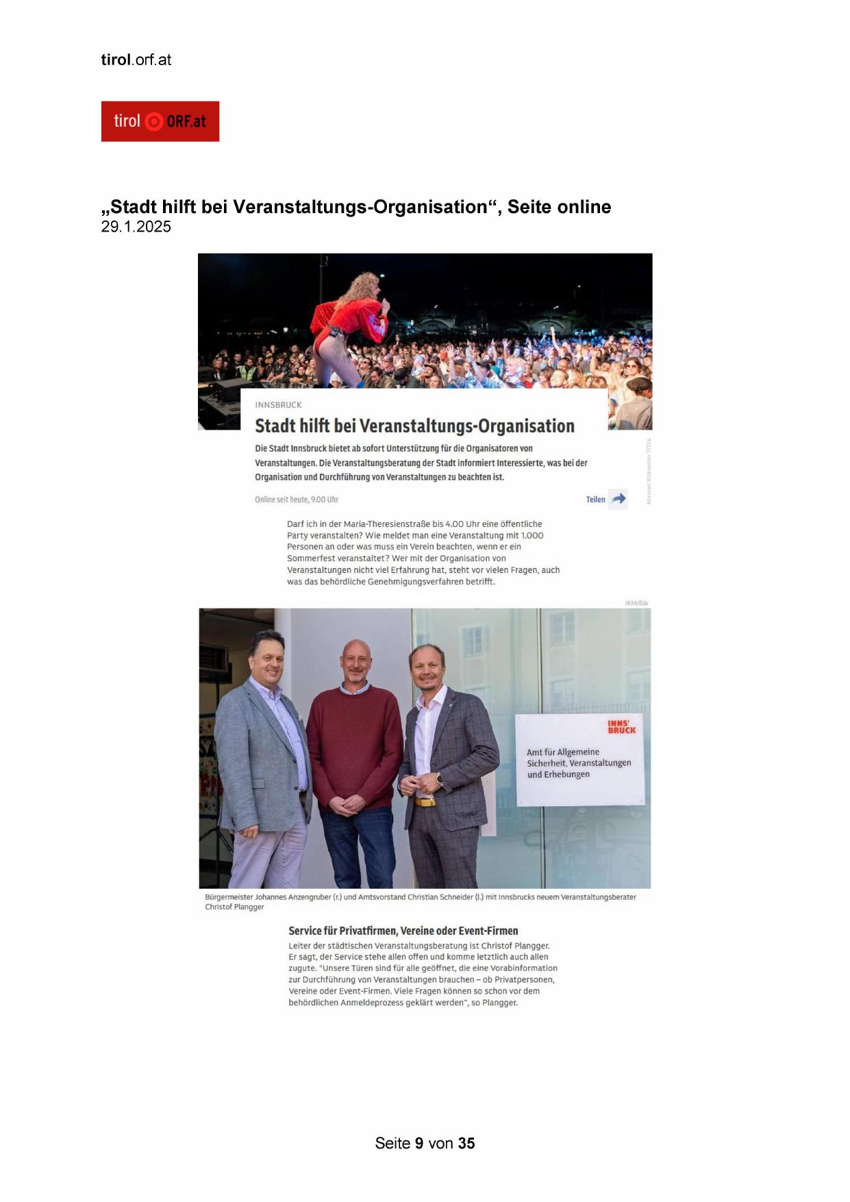 Die Stadt Innsbruck bietet ab sofort Unterstützung für die Organisatoren von