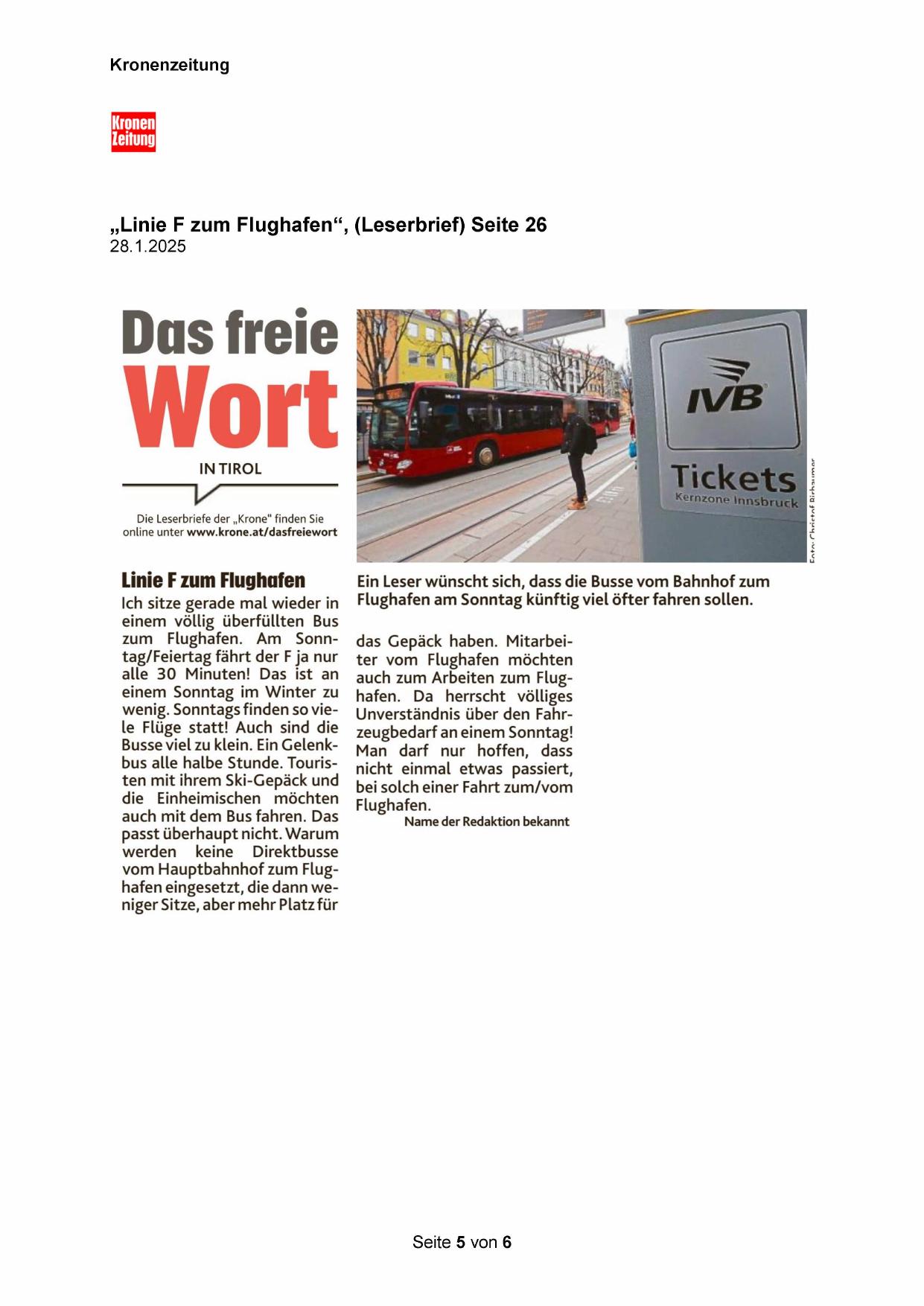 „Linie F zum Flughafen“, (Leserbrief) Seite 26