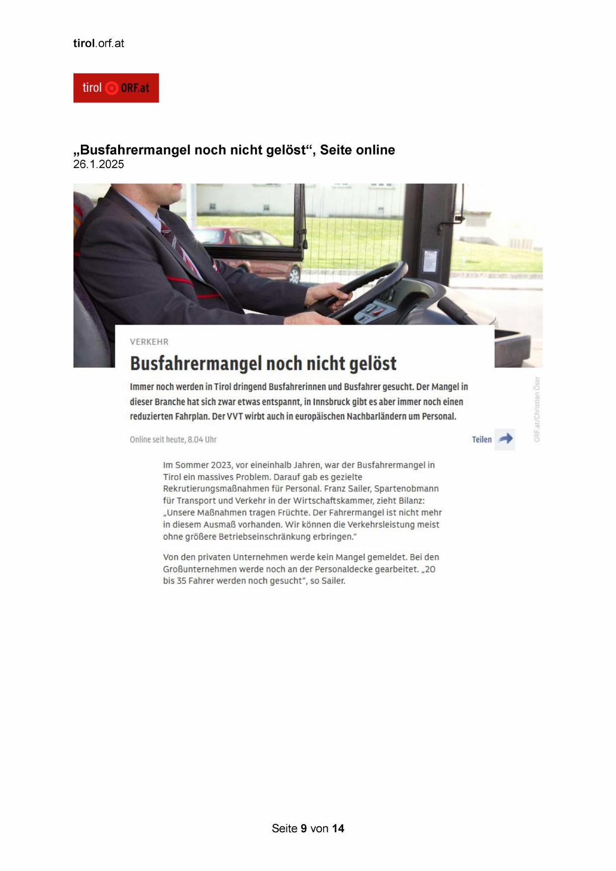 „Busfahrermangel noch nicht gelöst“‘“, Seite online