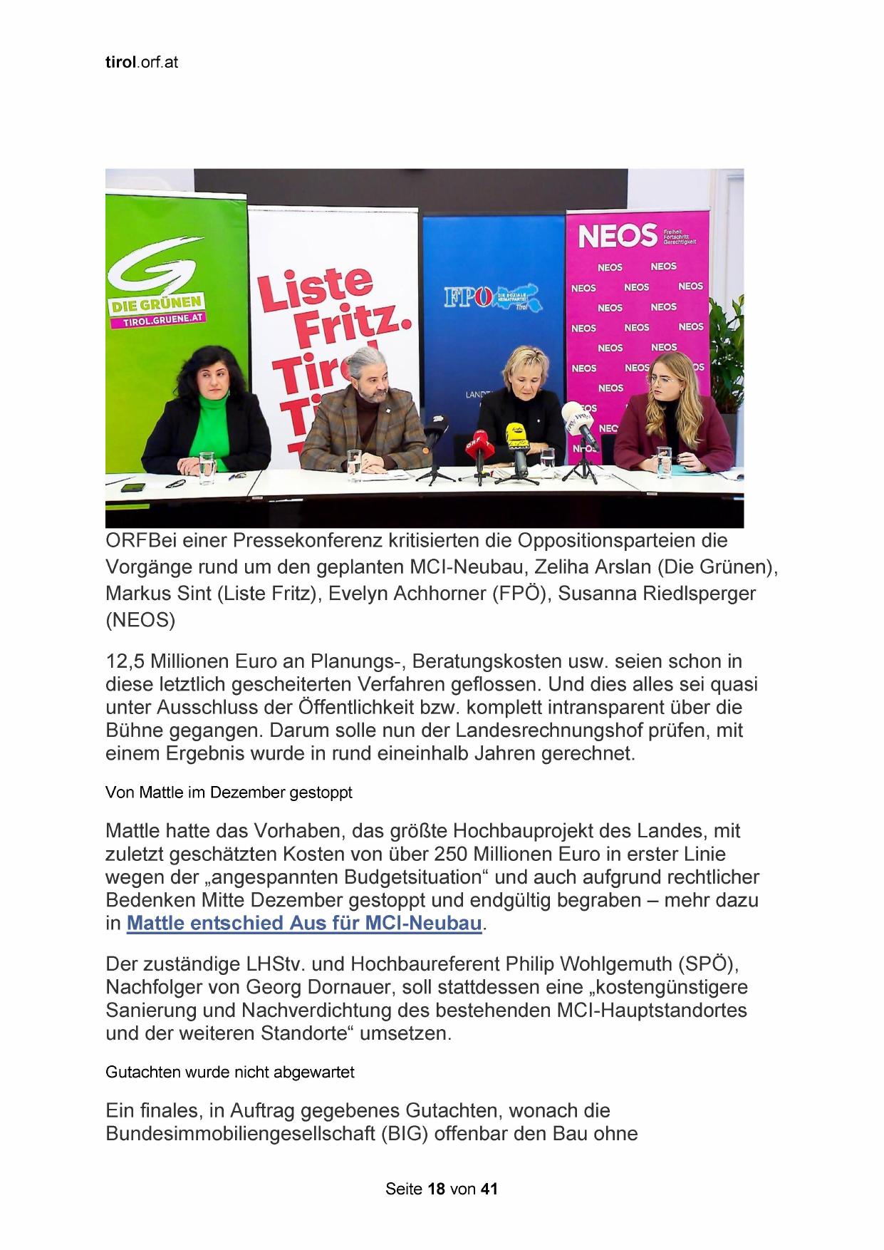 Vorgänge rund um den geplanten MCI-Neubau, Zeliha Arslan (Die Grünen),