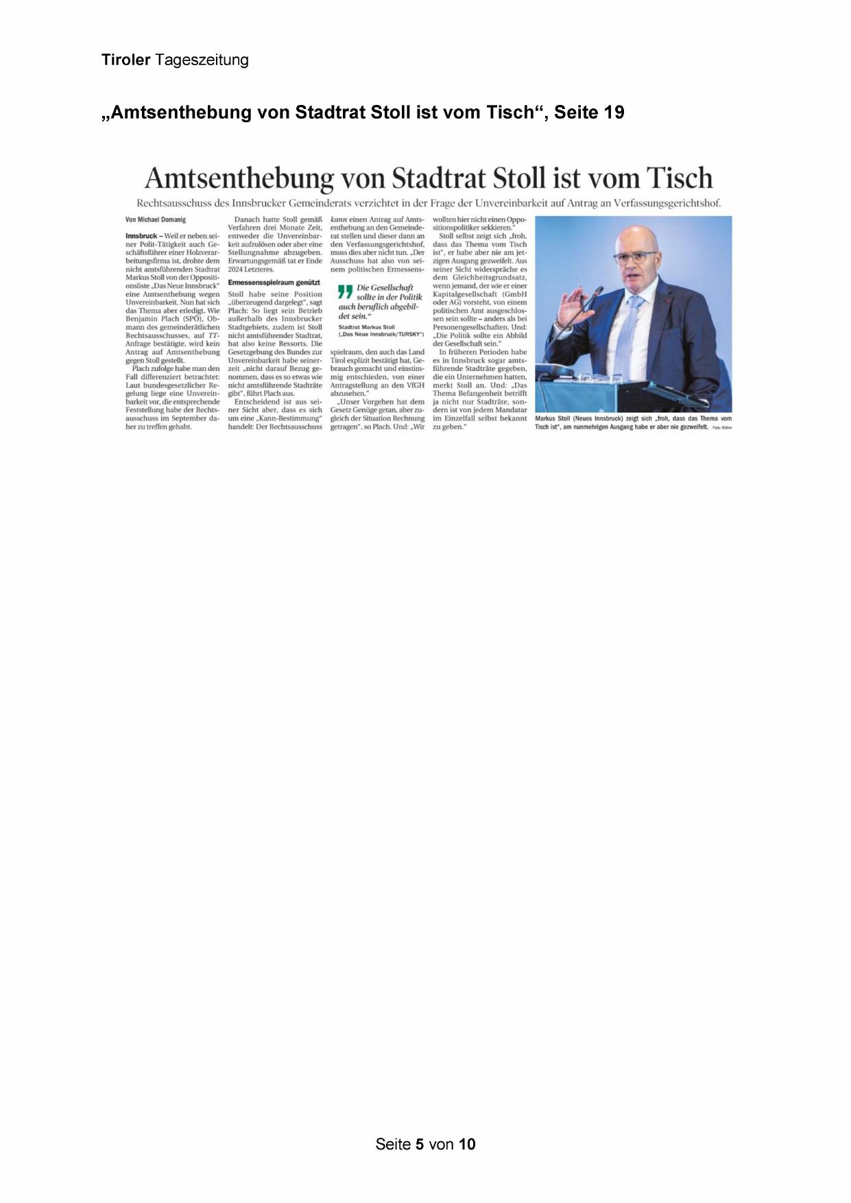 „Amtsenthebung von Stadtrat Stoll ist vom Tisch“, Seite 19