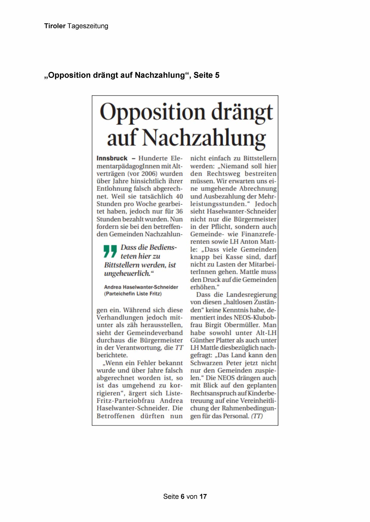 „Opposition drängt auf Nachzahlung“, Seite 5
