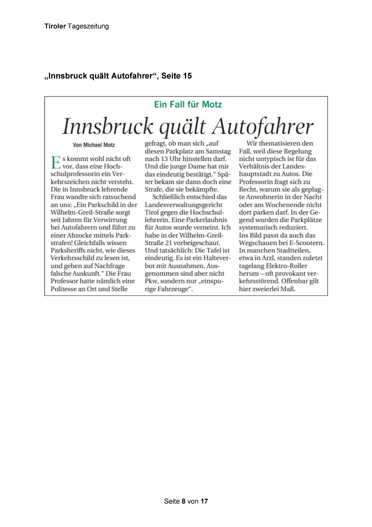 Tirol gegen die Hochschullehrerin. Eine Parkerlaubnis