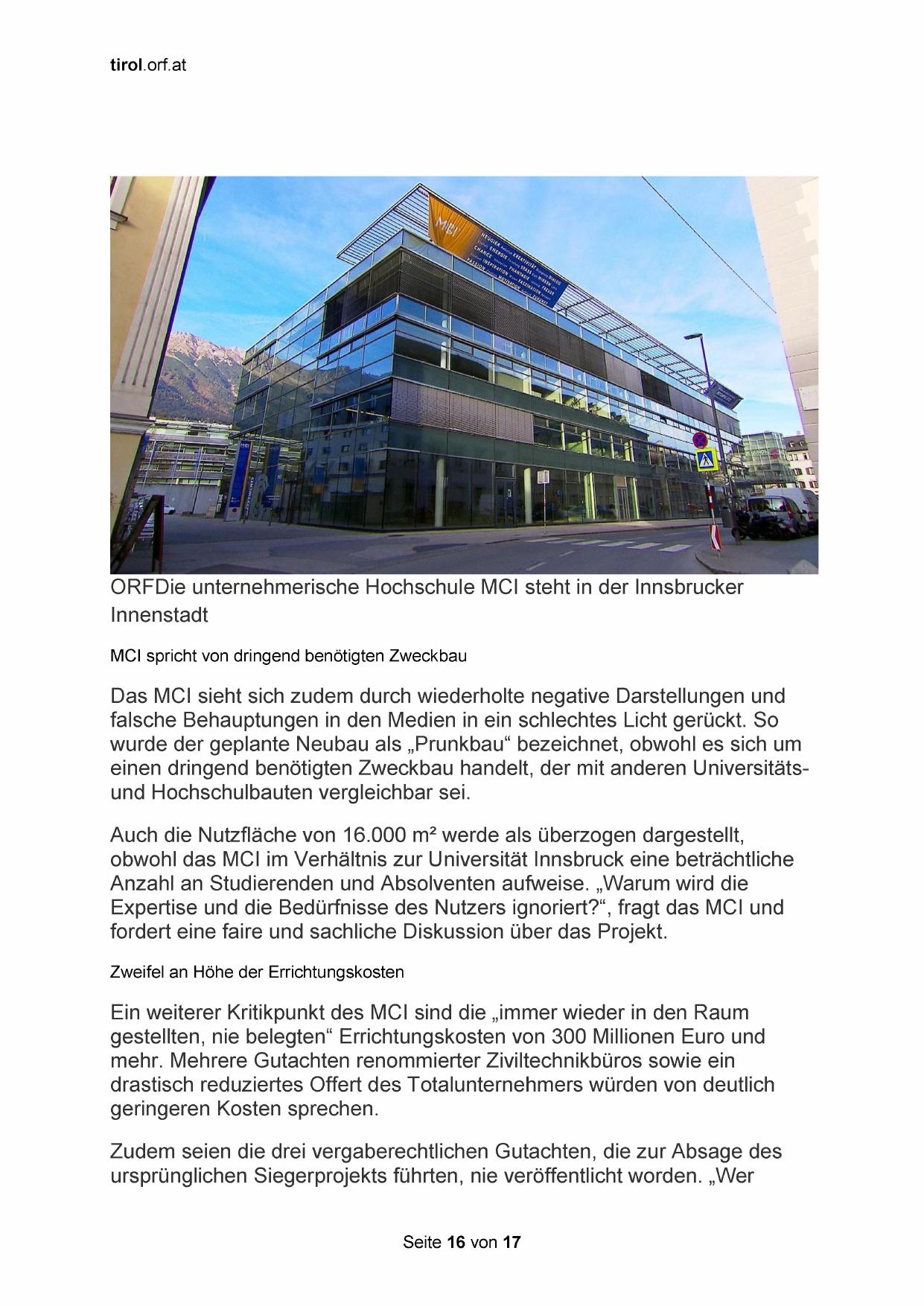 ORFDie unternehmerische Hochschule MCI steht in der Innsbrucker