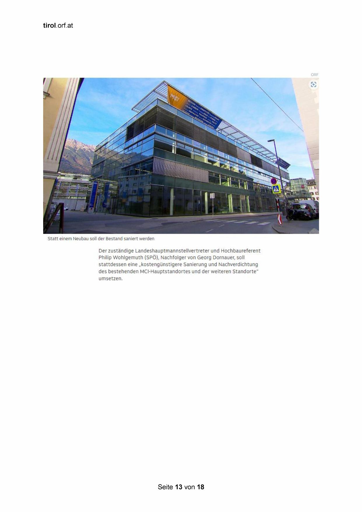 des bestehenden MCI-Hauptstandortes und der weiteren Standorte“