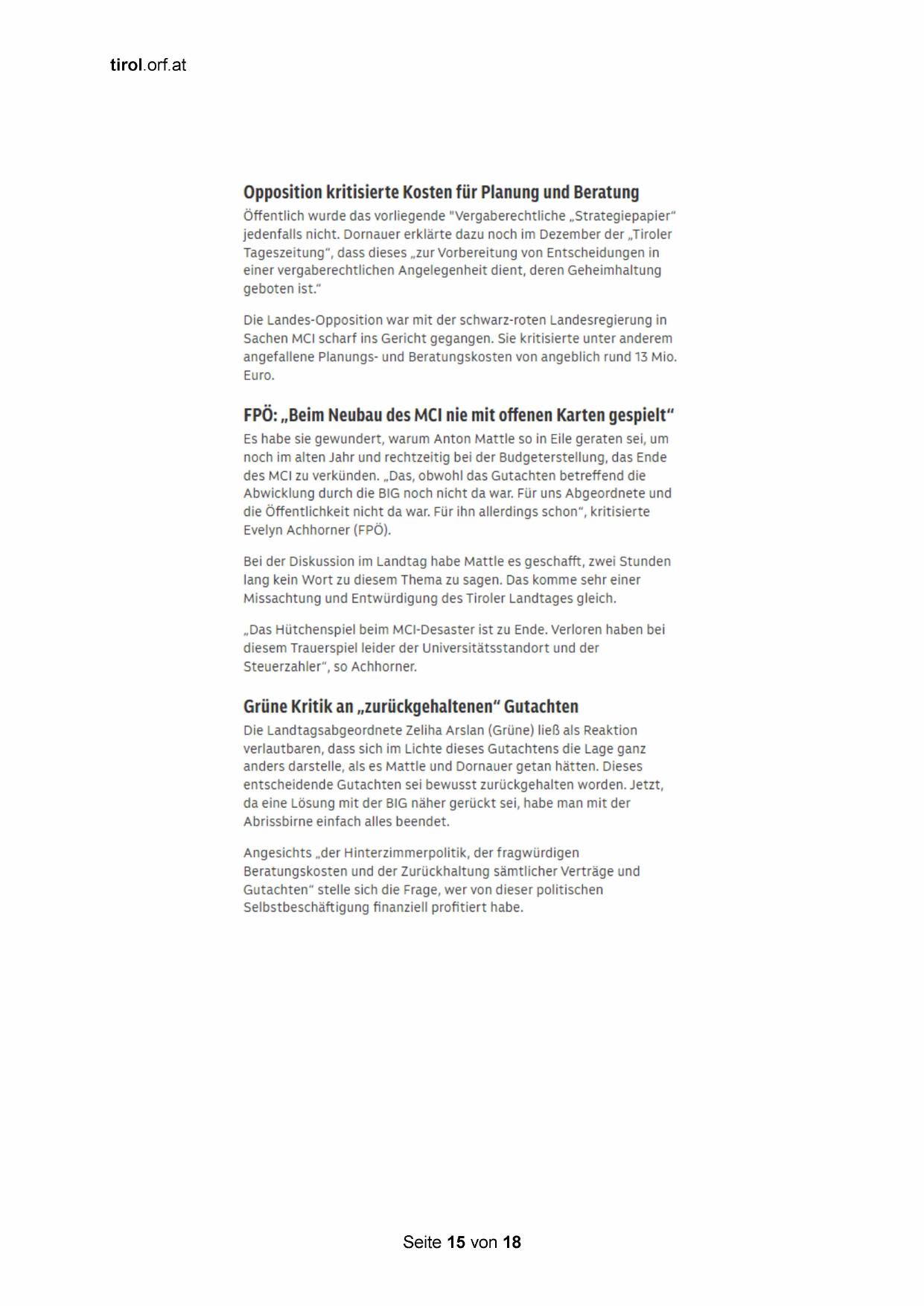 des MCI zu verkünden. „Das, obwohl das Gutachten betreffend die
