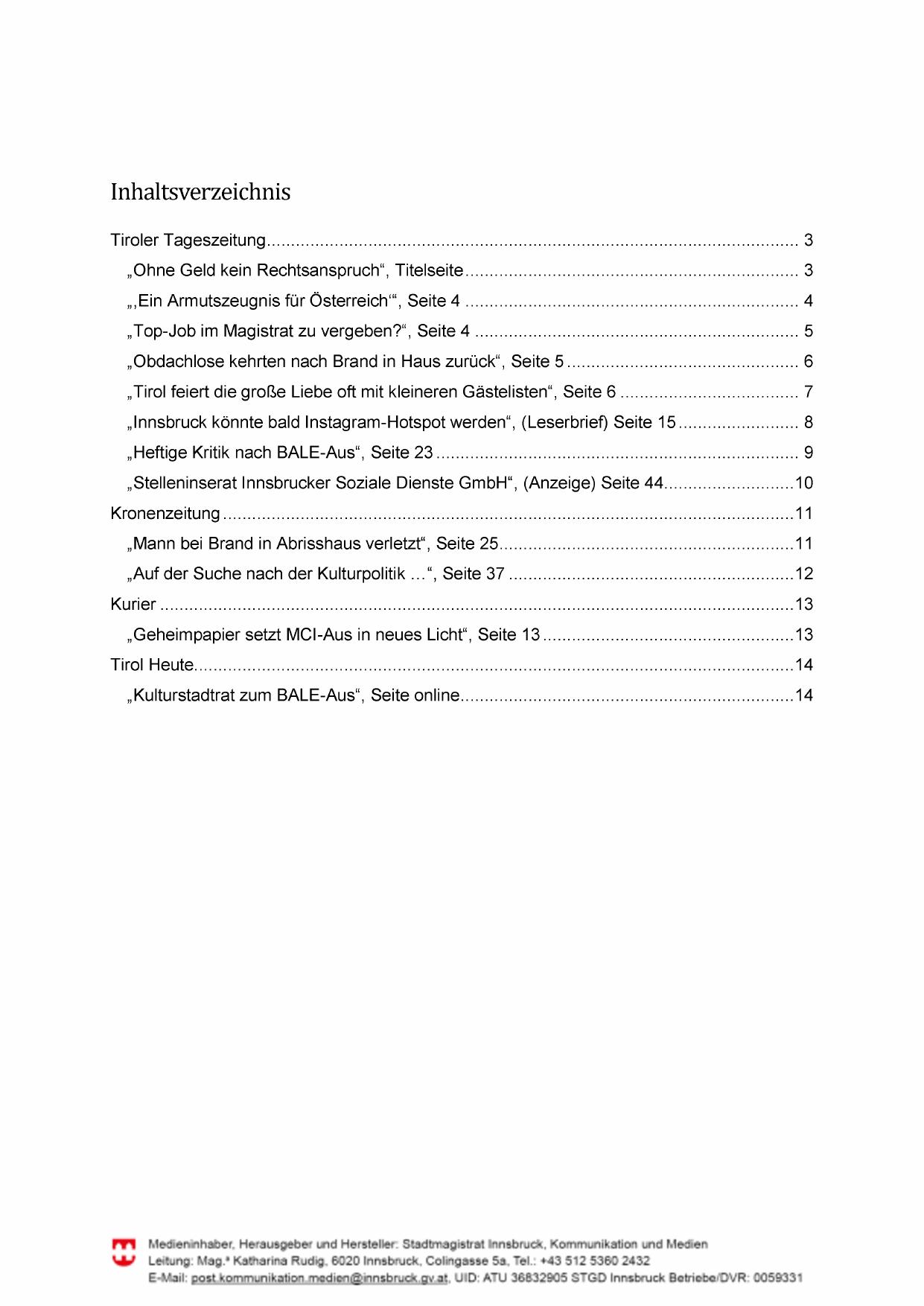 „Innsbruck könnte bald Instagram-Hotspot werden“, (Leserbrief) Seite 15......................... 8