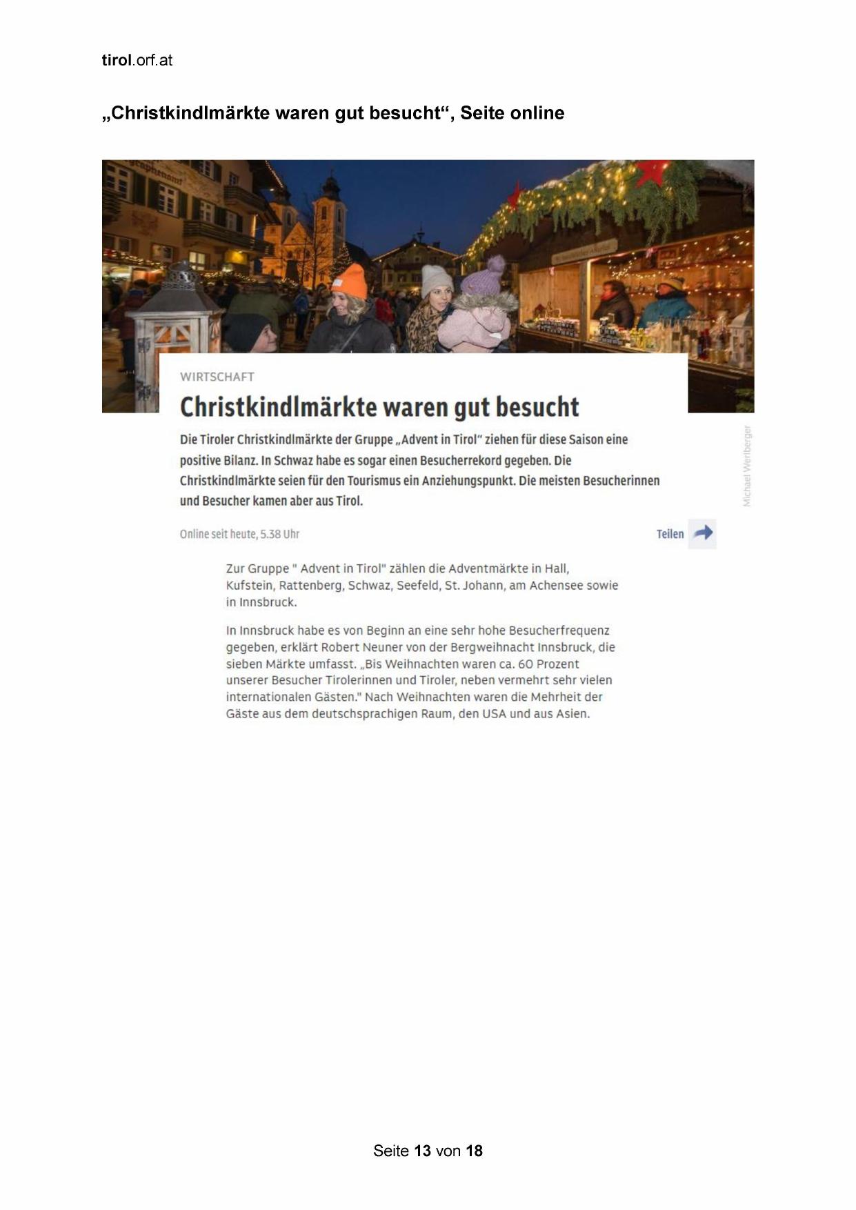 „Christkindlmärkte waren gut besucht“, Seite online