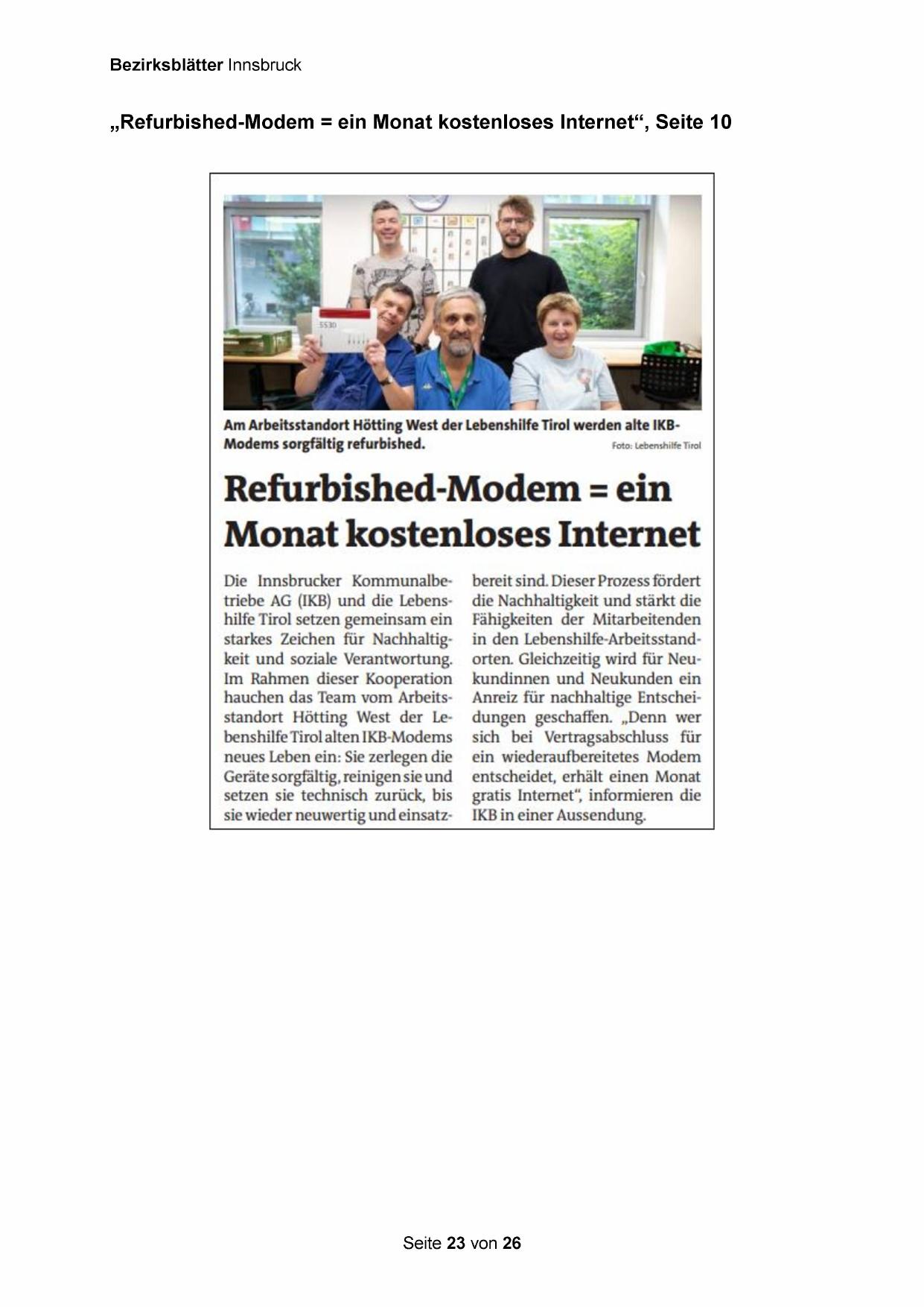 Die Innsbrucker Kommunalbetriebe AG (IKB) und die Lebenshilfe Tirol setzen gemeinsam ein