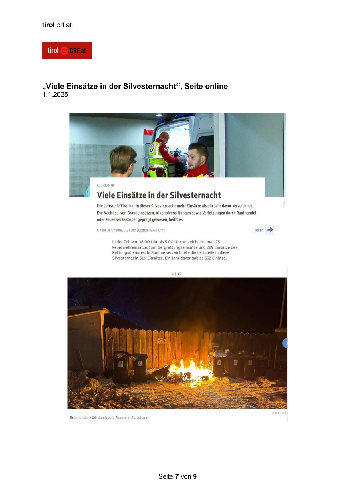 „Viele Einsätze in der Silvesternacht“, Seite online