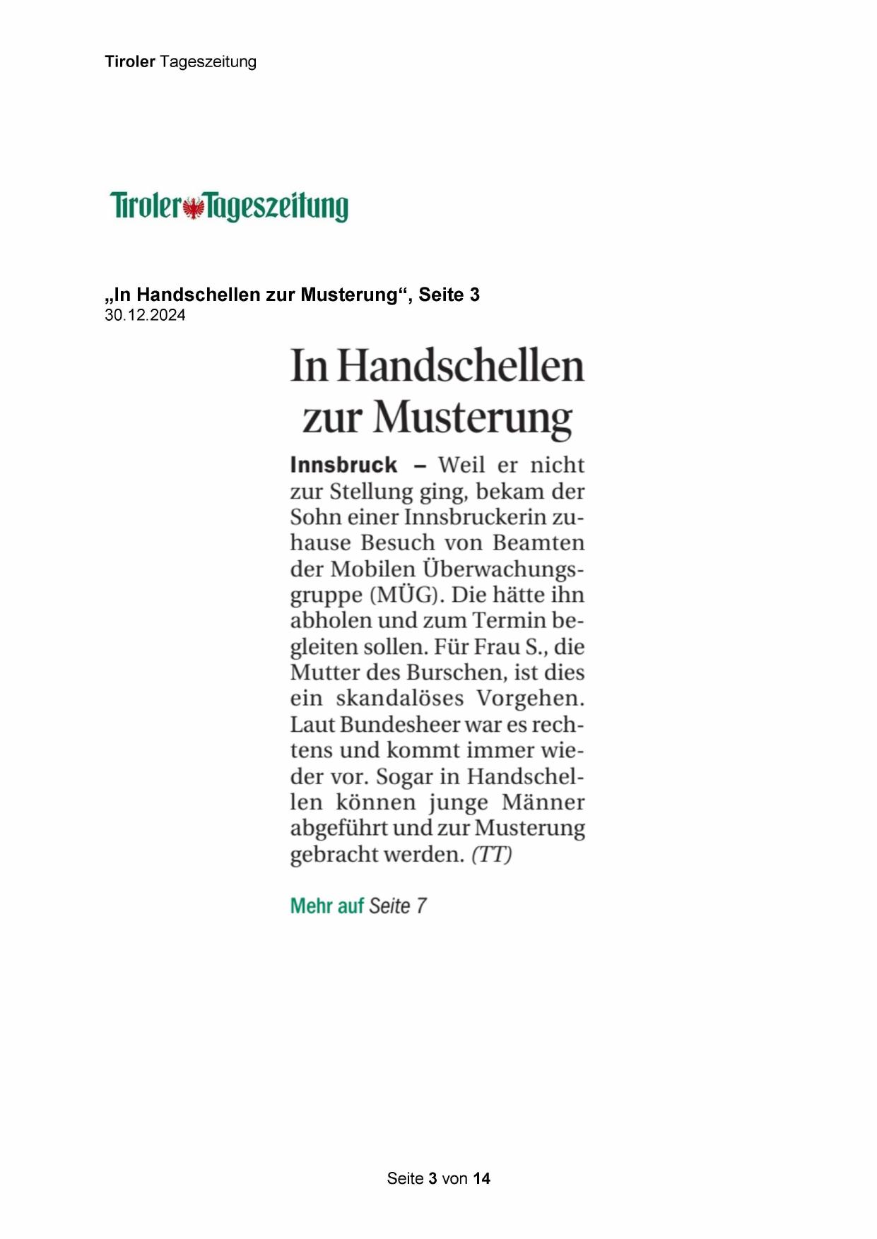 Laut Bundesheer war es rechtens und kommt immer wieder vor. Sogar in Handschellen können junge Männer