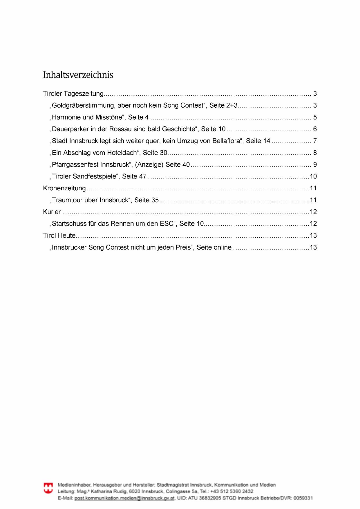 „Stadt Innsbruck legt sich weiter quer, kein Umzug von Bellaflora”, Seite 14 ..................... 7