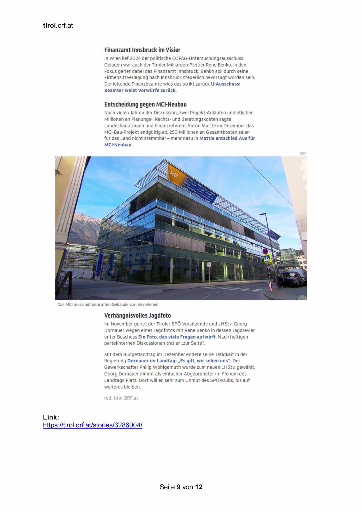 Fokus geriet dabei das Finanzamt Innsbruck. Benko soll durch seine