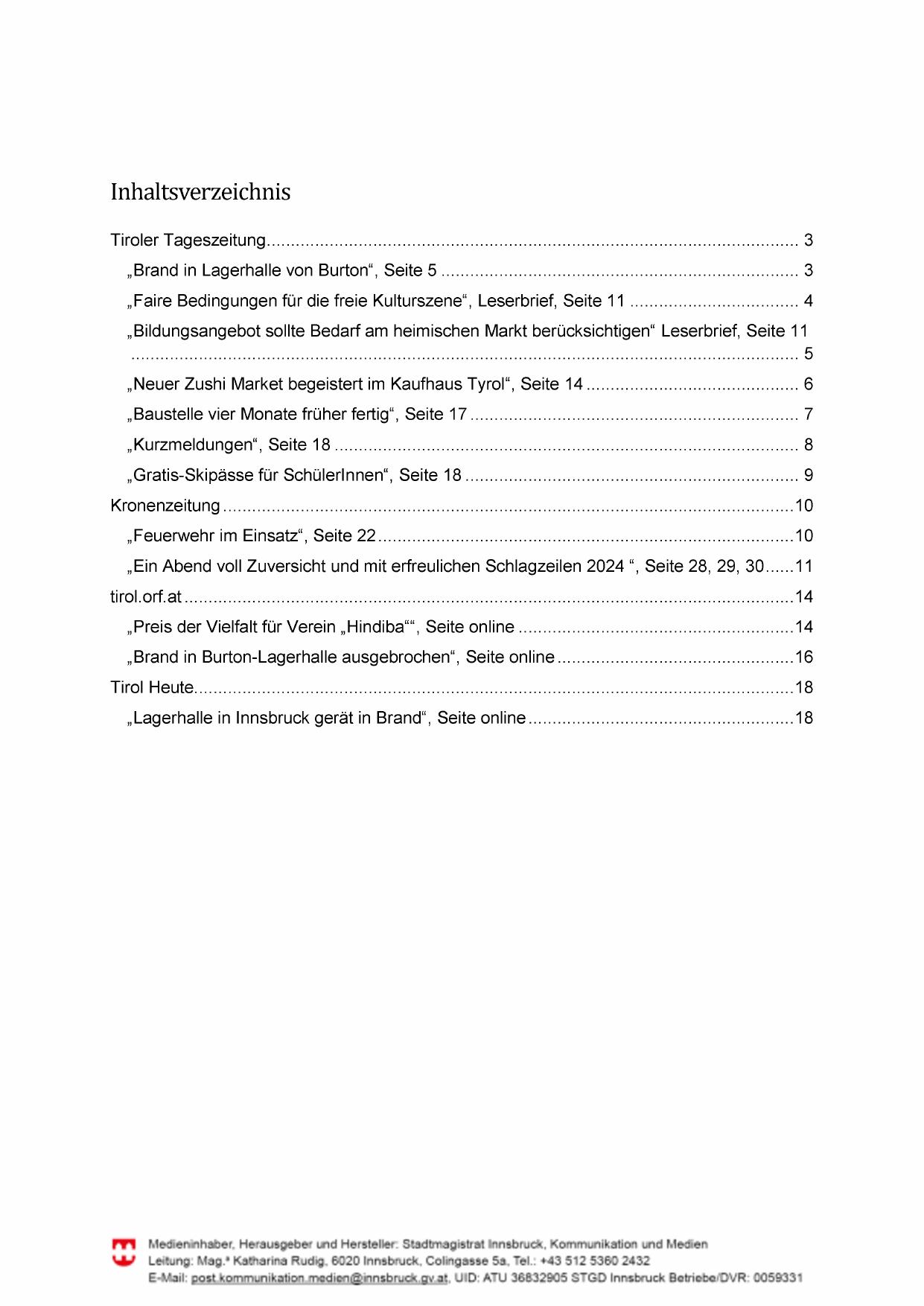 „Lagerhalle in Innsbruck gerät in Brand“, Seite ONliNE rr 18