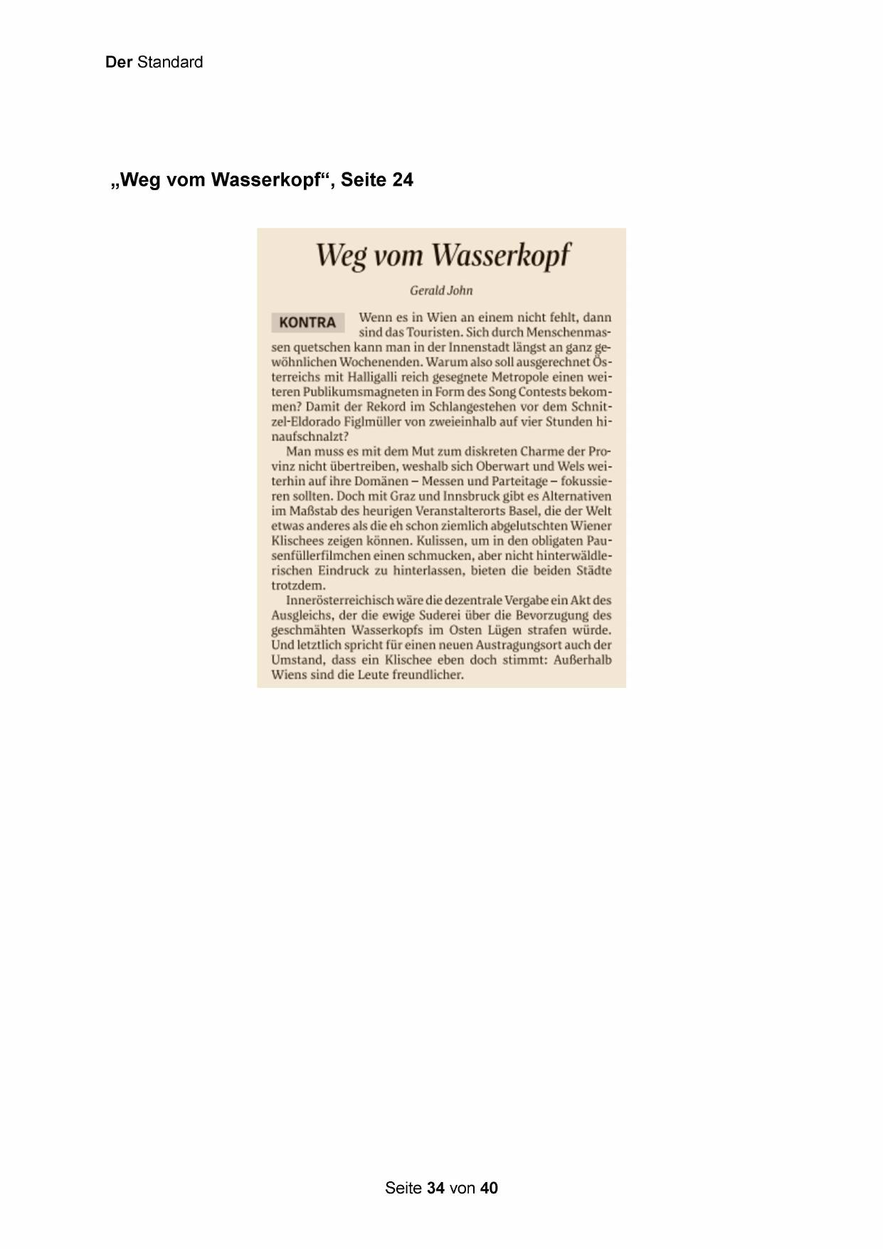 sind das Touristen. Sich durch Menschenmassen quetschen kann man in der Innenstadt längst an ganzgwöhnlichen Wochenenden. Warum also soll ausgerechnet Österreichs mit Halligalli reich gesegnete Metropole einen weiteren Publikumsmagneten in Form des Song Contests bekommen? Damit der Rekord im Schlangestehen vor dem Schnitzel-Eldorado Figlmüller von zweieinhalb auf vier Stunden hinaufschnalzt?
