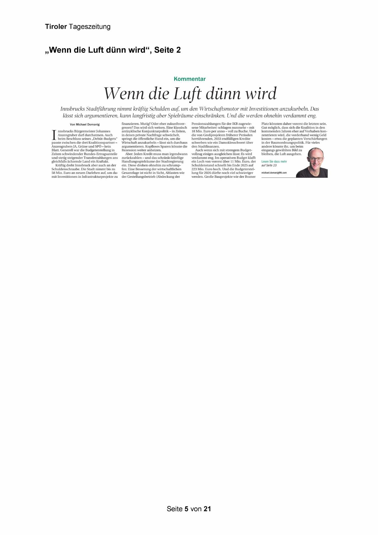 Innsbrucks Stadtführung nimmt kräftig Schulden auf, um den Wirtschaftsmotor mit Investitionen anzukurbeln. Das