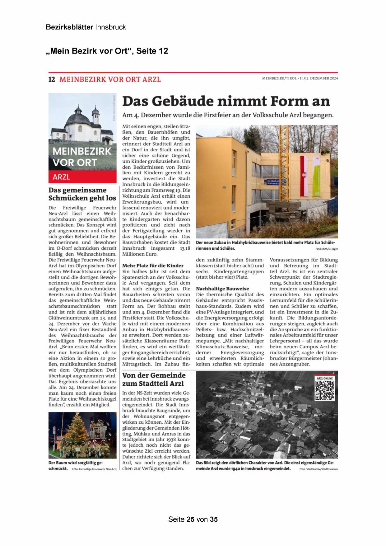 Am 4. Dezember wurde die Firstfeier an der Volksschule Arzl begangen.