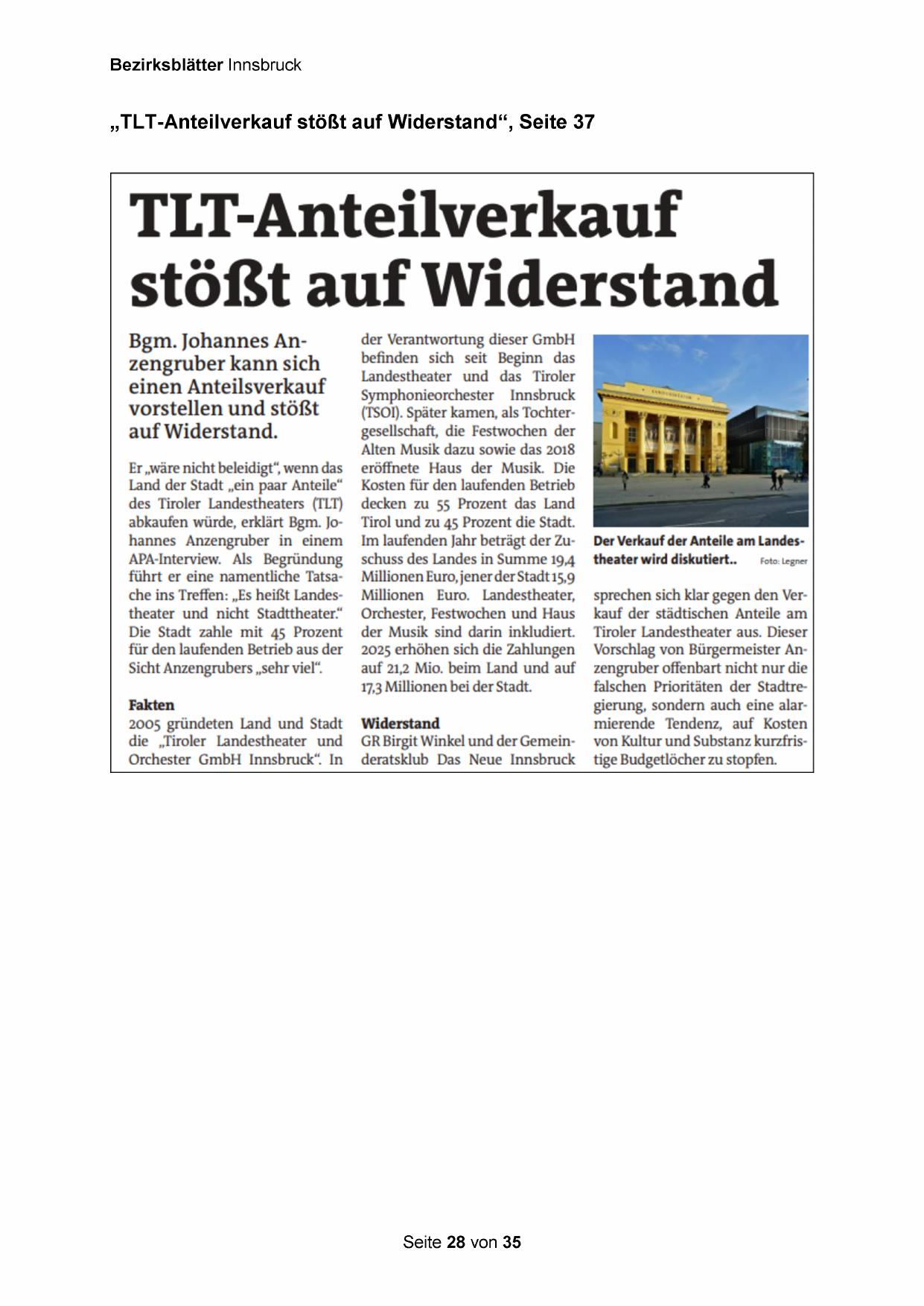 „TLT-Anteilverkauf stößt auf Widerstand“, Seite 37
