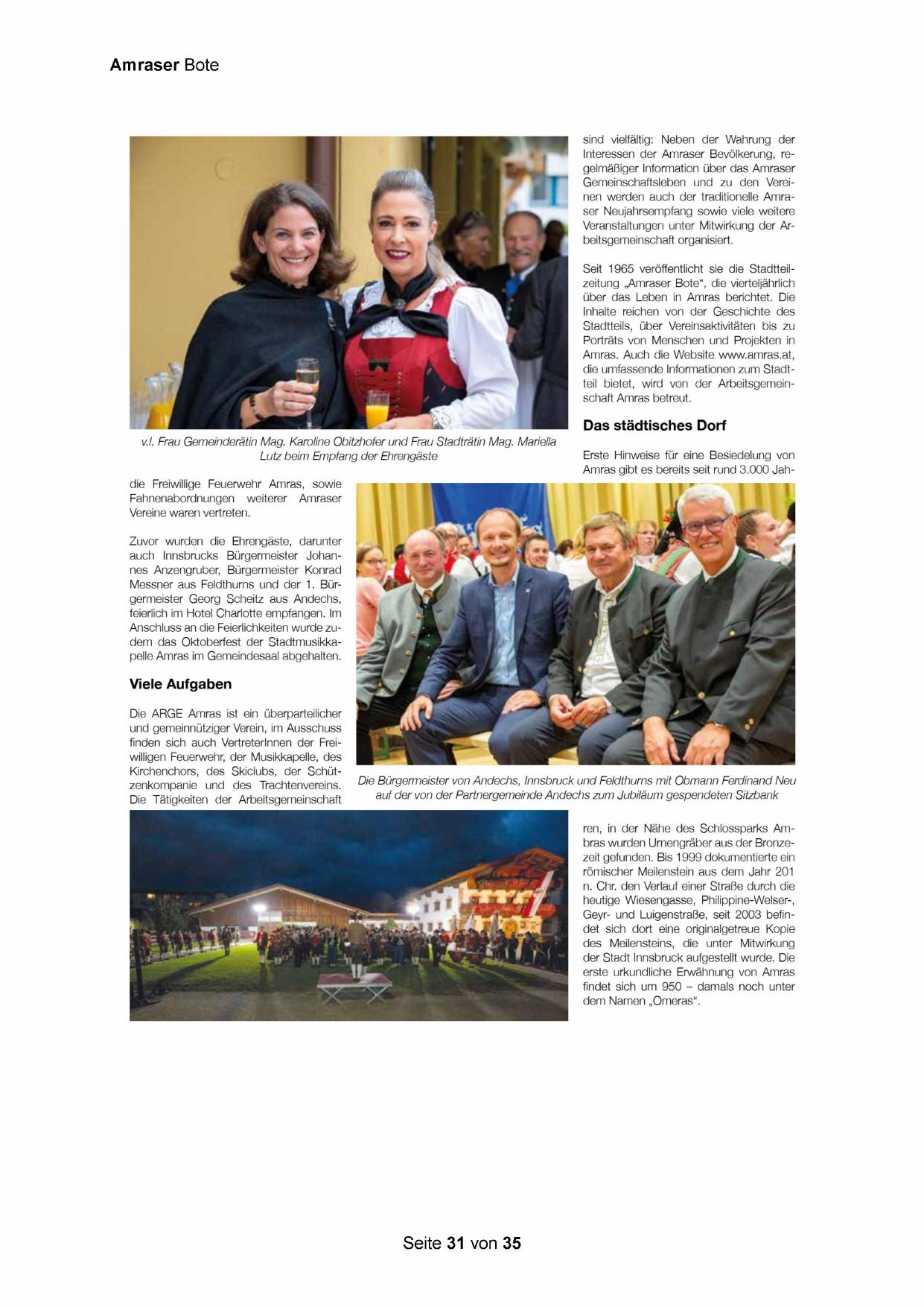 Seit 1965 veröffentlicht sie die Stadtteilzeitung „Amraser Bote“, die vierteljährlich