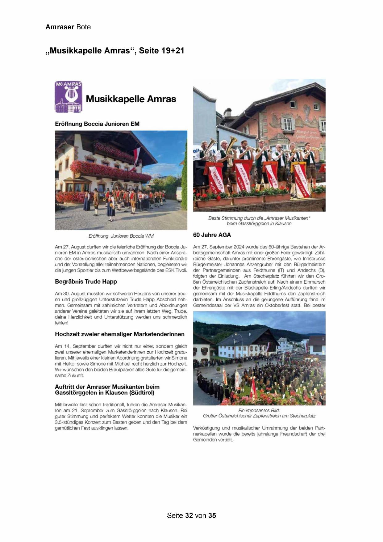 Am 27. September 2024 wurde das 60-jährige Bestehen der Arbeitsgemeinschaft Amras mit einer großen Feier gewürdigt. Zahlreiche Gäste, darunter prominente Ehrengäste, wie Innsbrucks