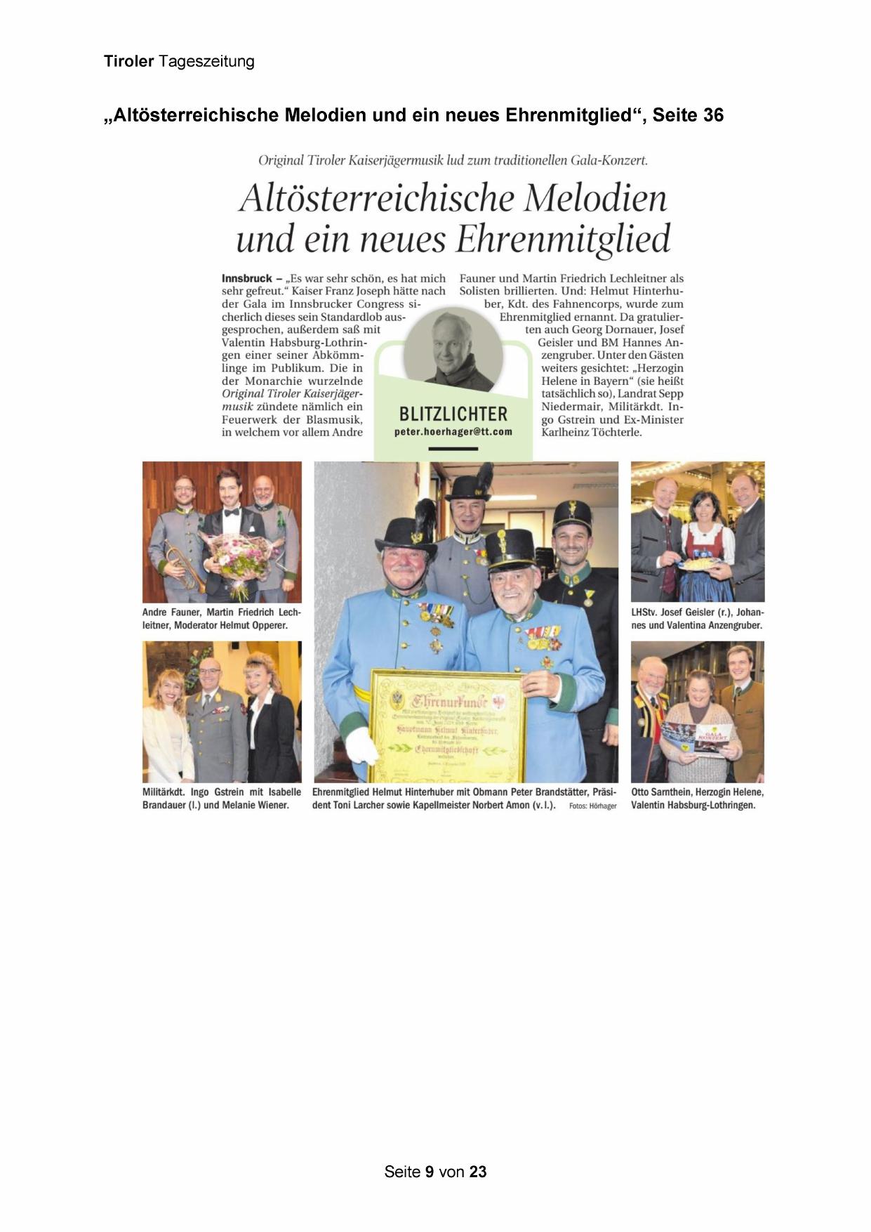 sehr gefreut.“ Kaiser Franz Joseph hätte nach Solisten brillierten. Und: Helmut Hinterhuder Gala im Innsbrucker Congress si- ber, Kdt. des Fahnencorps, wurde zum