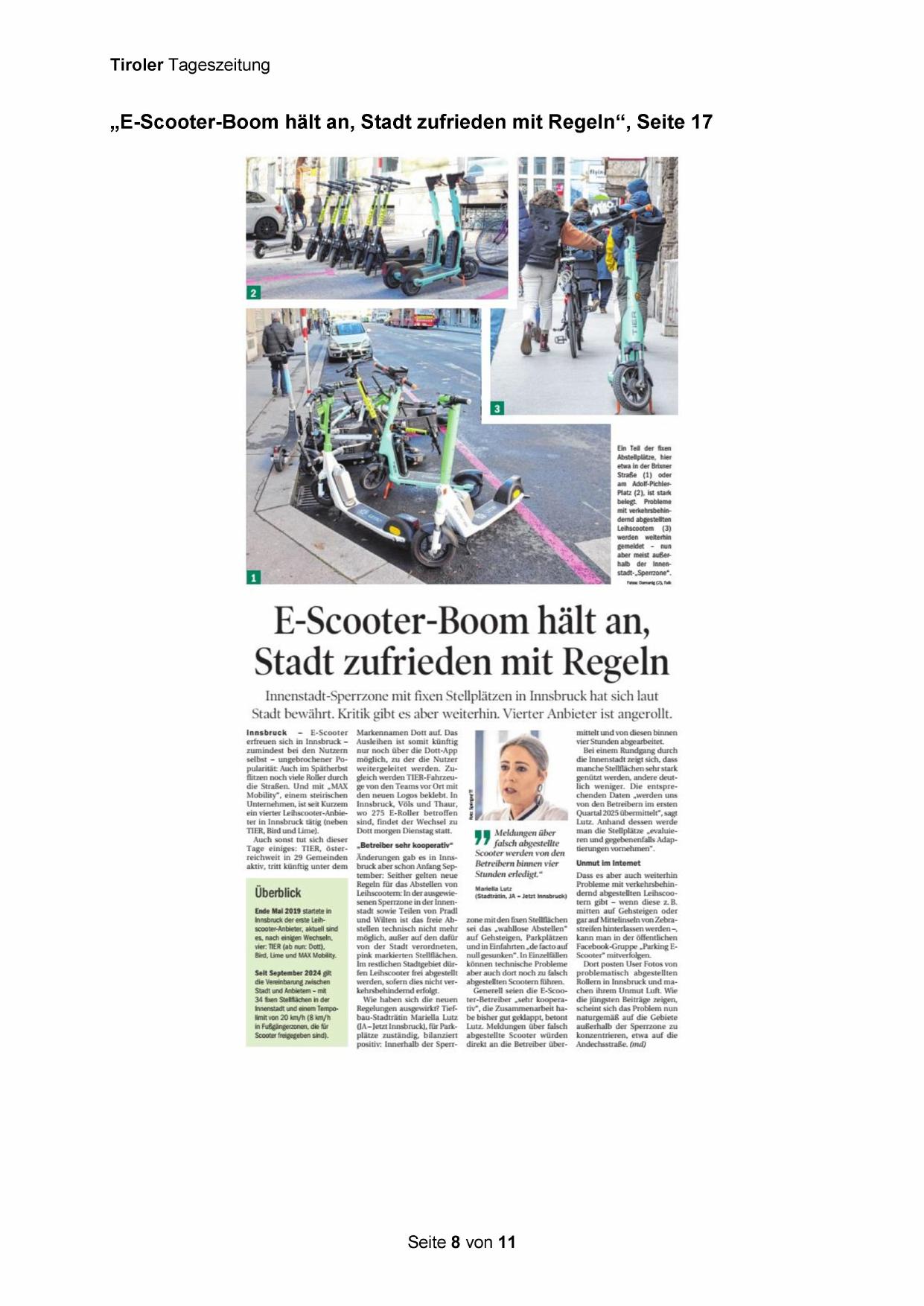 „E-Scooter-Boom hält an, Stadt zufrieden mit Regeln“, Seite 17
