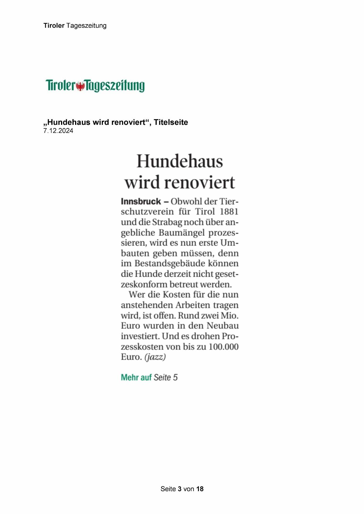 Innsbruck —- Obwohl der Tierschutzverein für Tirol 1881