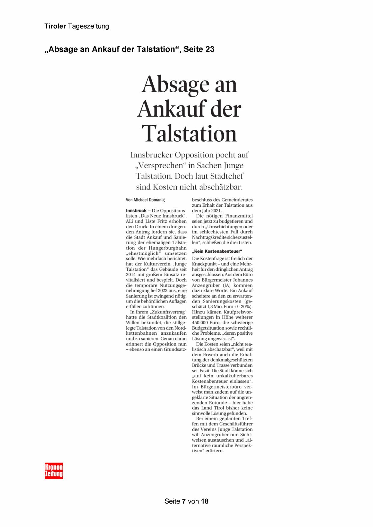 die Stadt Ankauf und Sanierung der ehemaligen Talstation der Hungerburgbahn