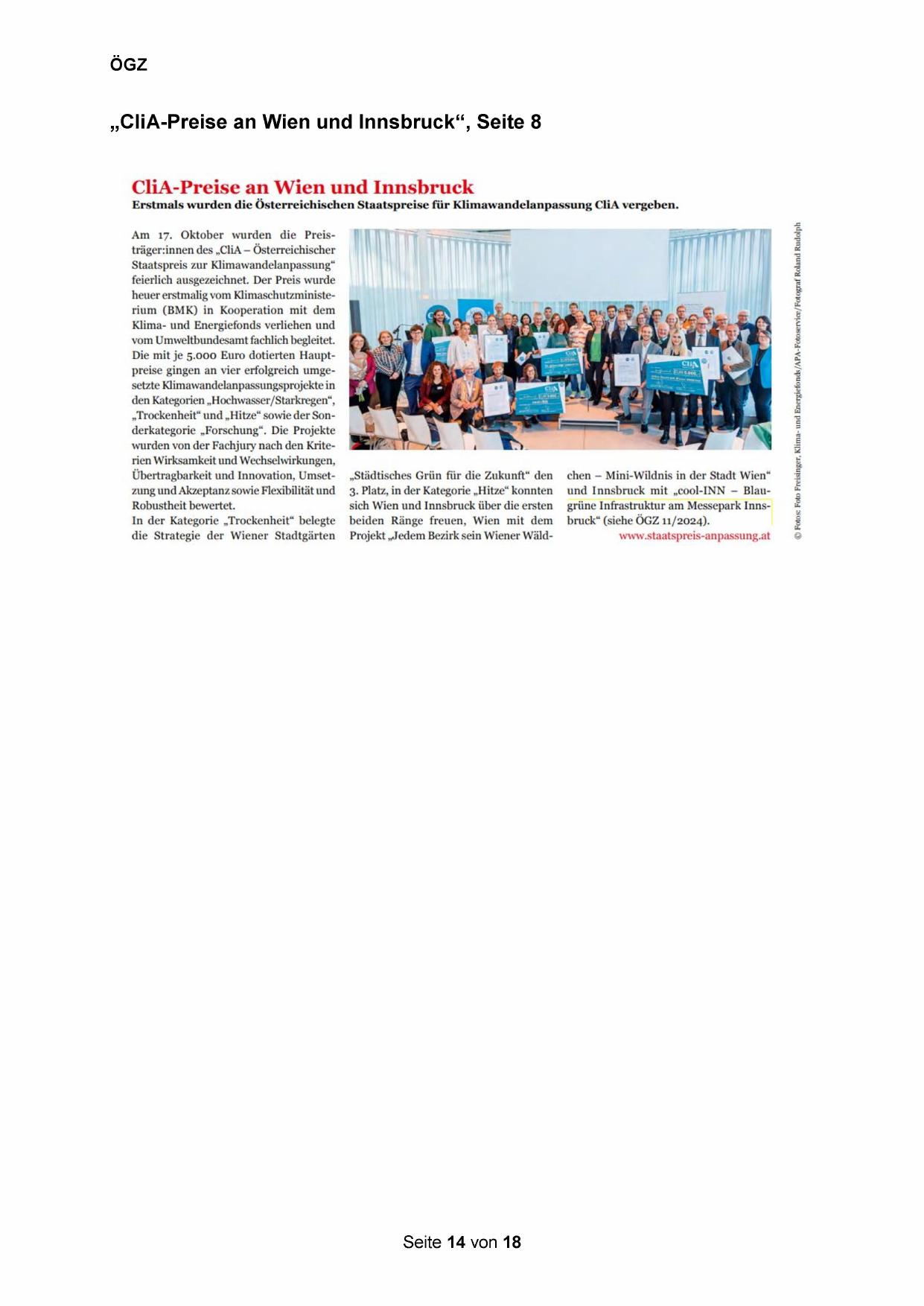 und Innsbruck mit „cool-INN — Blaugrüne Infrastruktur am Messepark Innsbruck“ (siehe ÖGZ 11/2024).