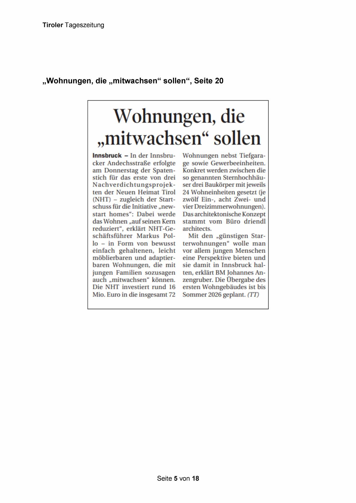 Nachverdichtungsprojekten der Neuen Heimat Tirol