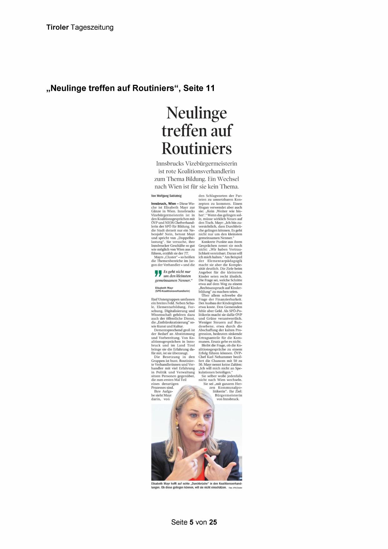 Innsbruck, Wien —- Diese Woche ist Elisabeth Mayr zur