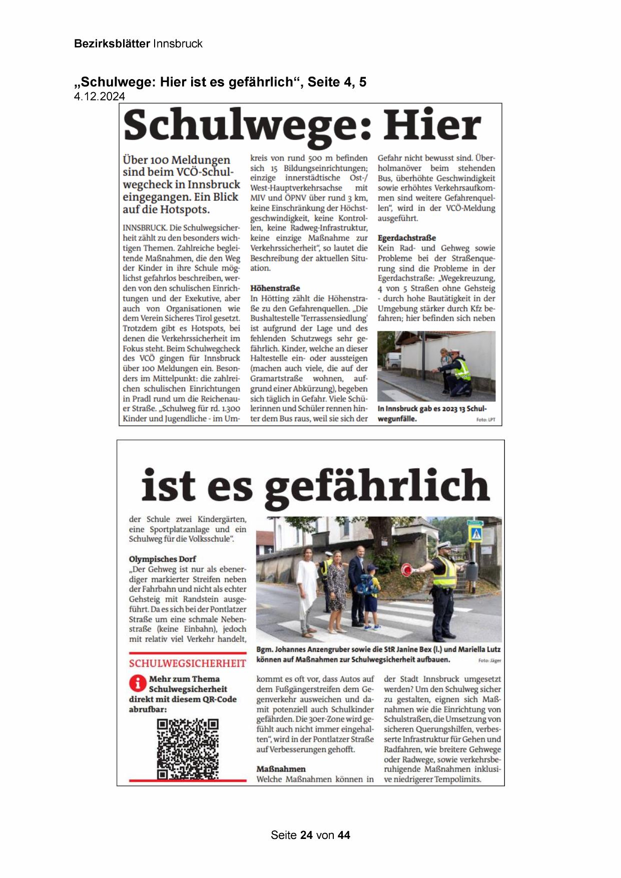 INNSBRUCK. Die Schulwegsicherheit zählt zu den besonders wichtigen Themen. Zahlreiche begleitende Maßnahmen, die den Weg