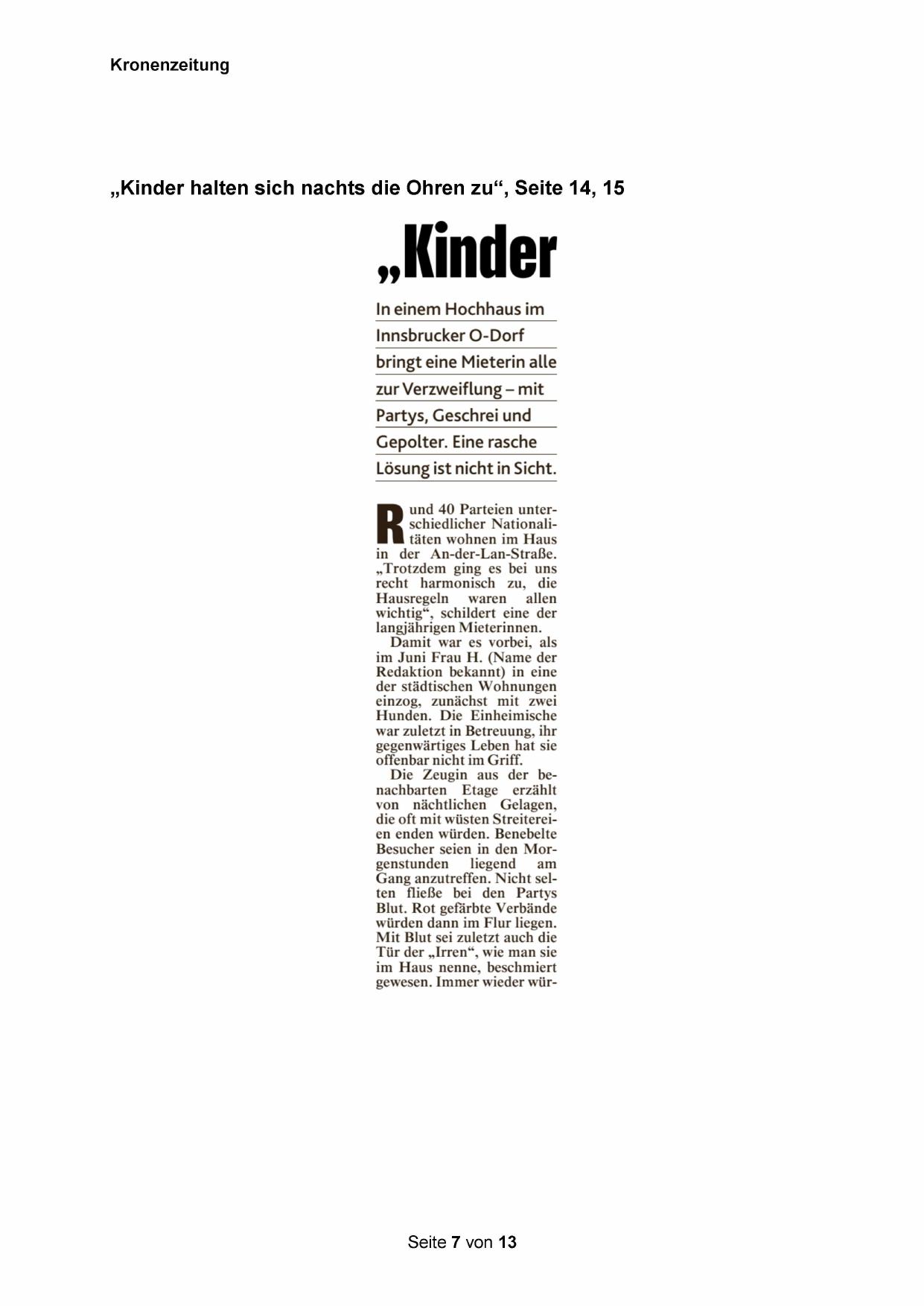 „Kinder halten sich nachts die Ohren zu“, Seite 14, 15