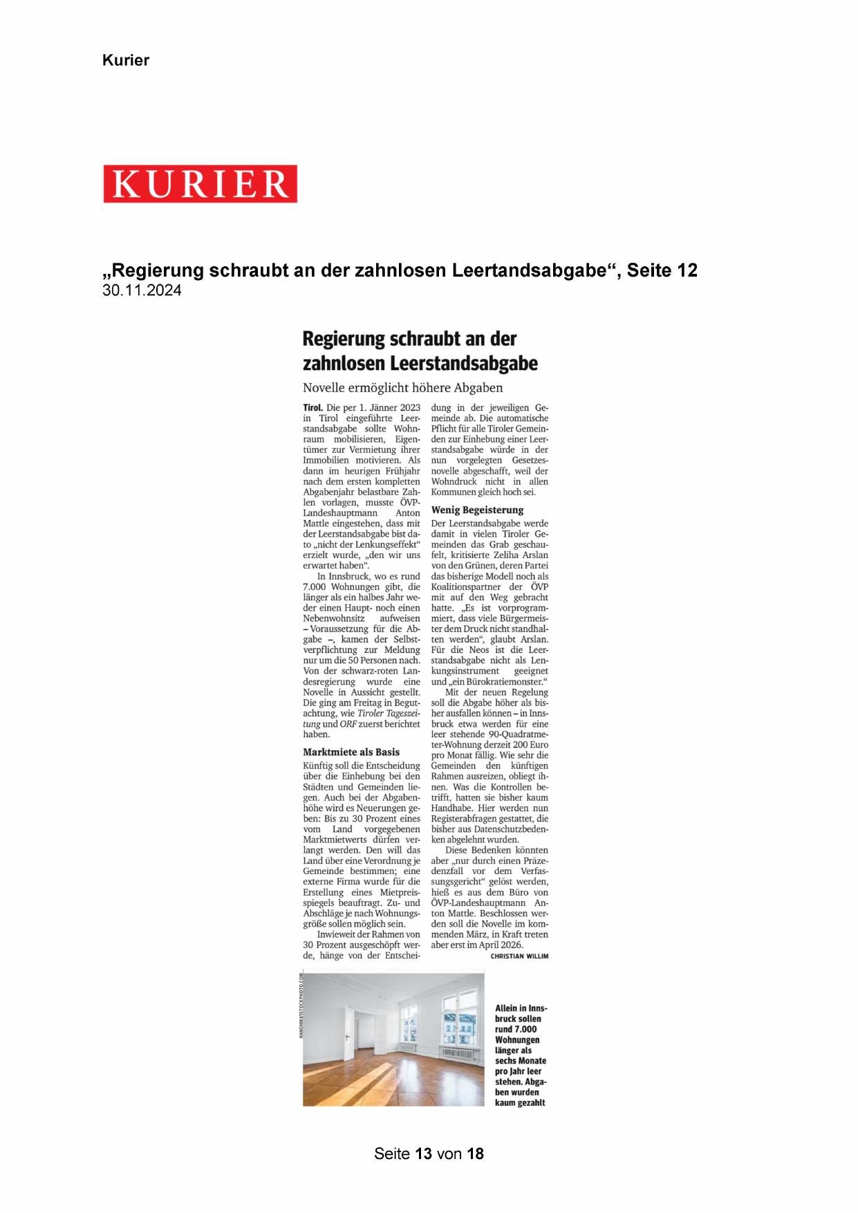 in Tirol eingeführte Leerstandsabgabe sollte Wohnraum mobilisieren, Eigentümer zur Vermietung ihrer