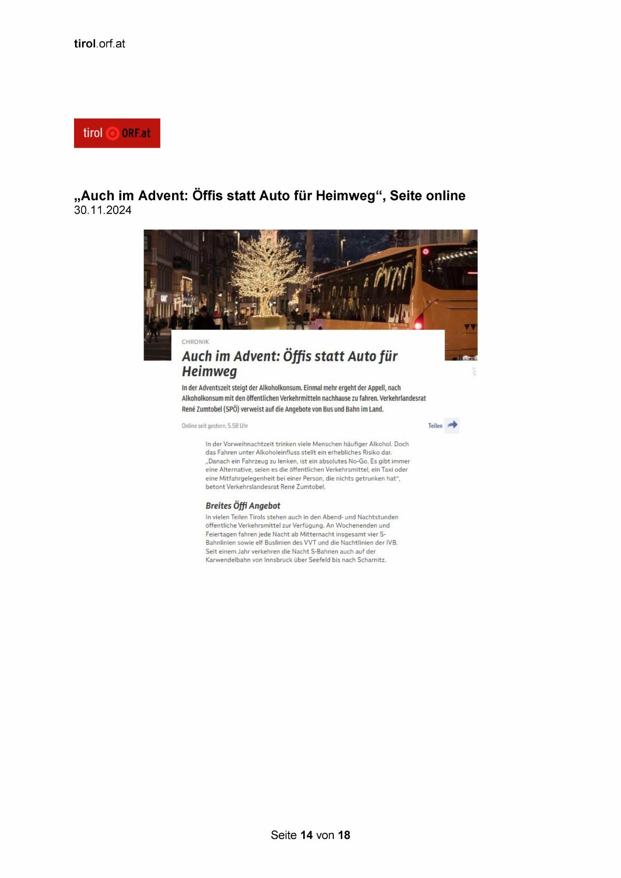 „Auch im Advent: Öffis statt Auto für Heimweg“, Seite online