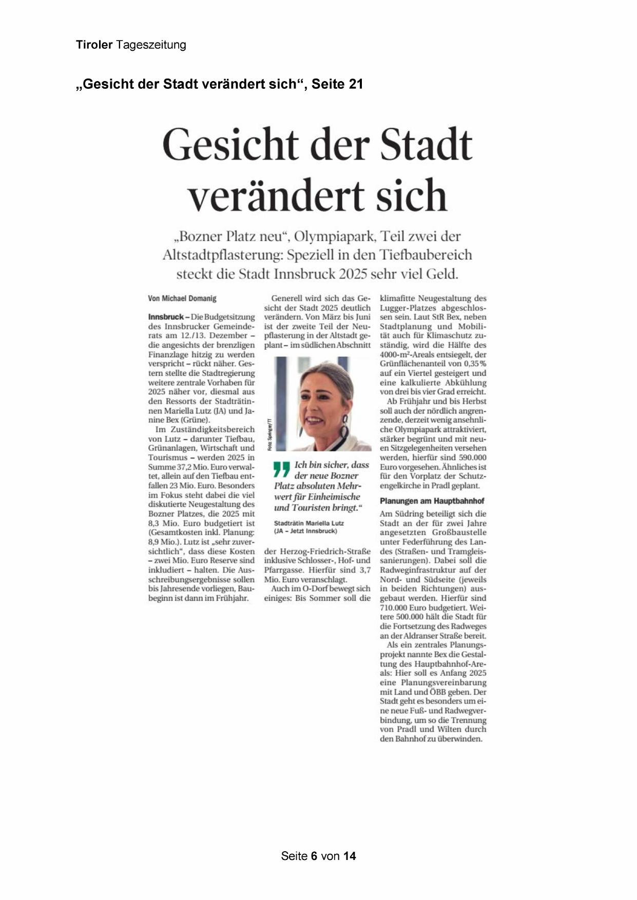 steckt die Stadt Innsbruck 2025 sehr viel Geld.