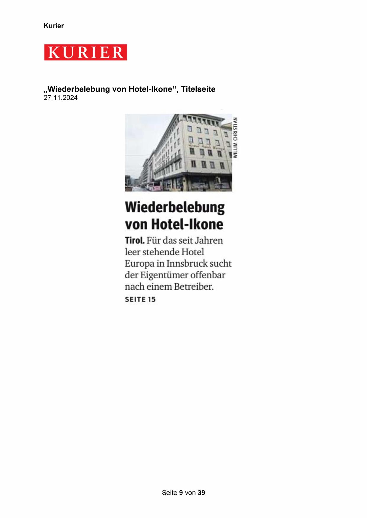 „Wiederbelebung von Hotel-Ikone“, Titelseite