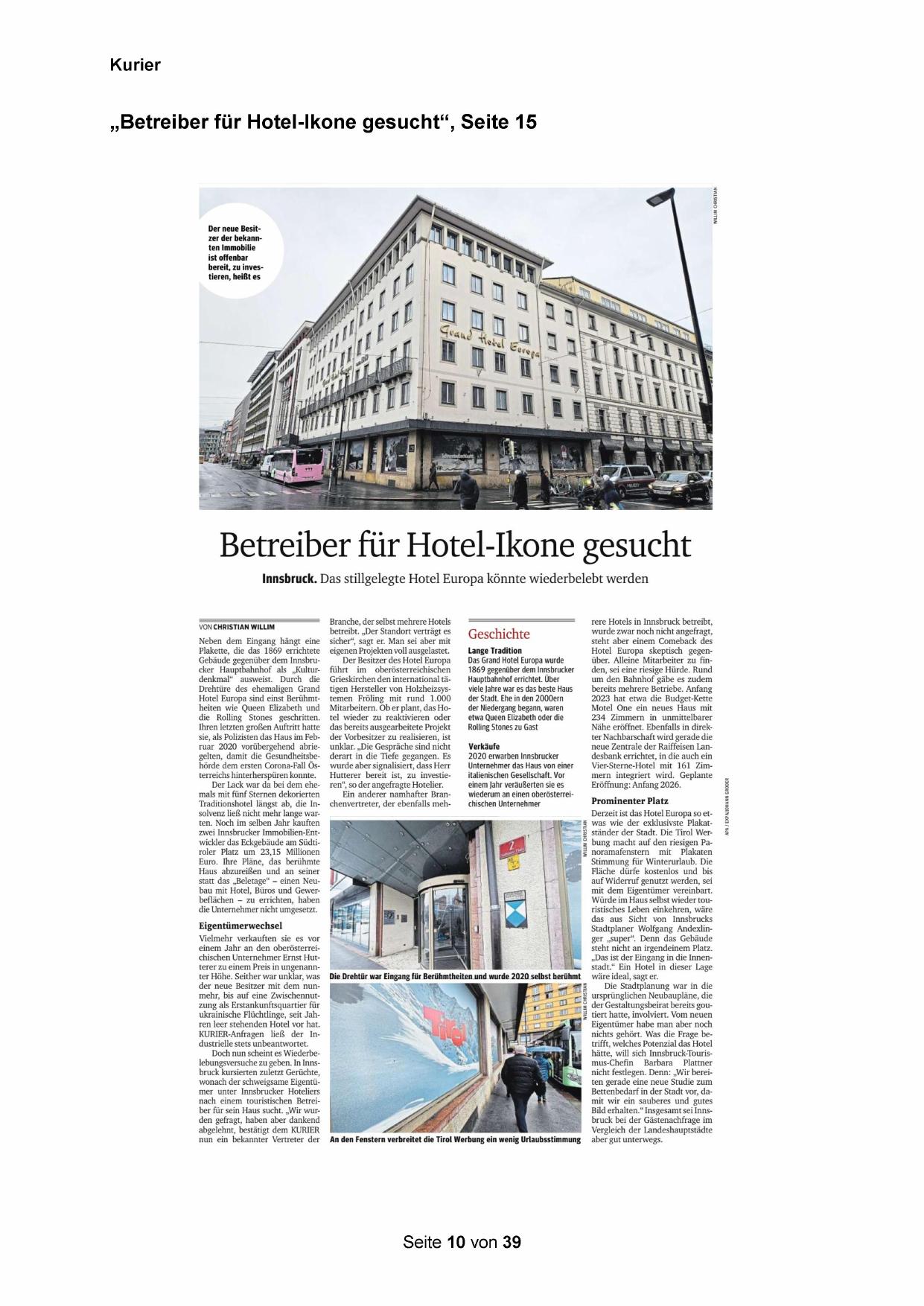 „Betreiber für Hotel-Ikone gesucht“, Seite 15