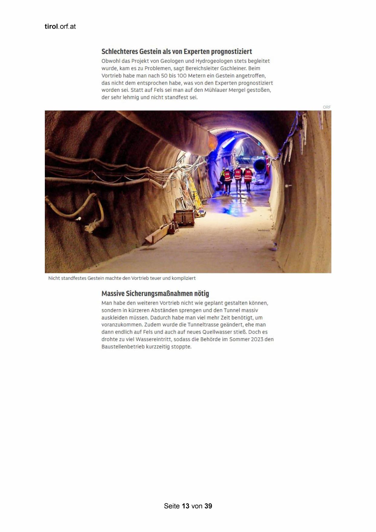 Vortrieb habe man nach 50 bis 100 Metern ein Gestein angetroffen,