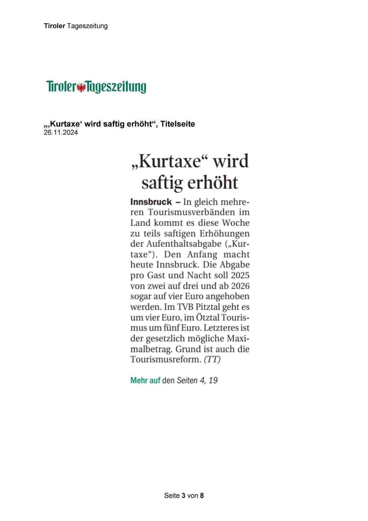 „‚Kurtaxe‘ wird saftig erhöht“, Titelseite