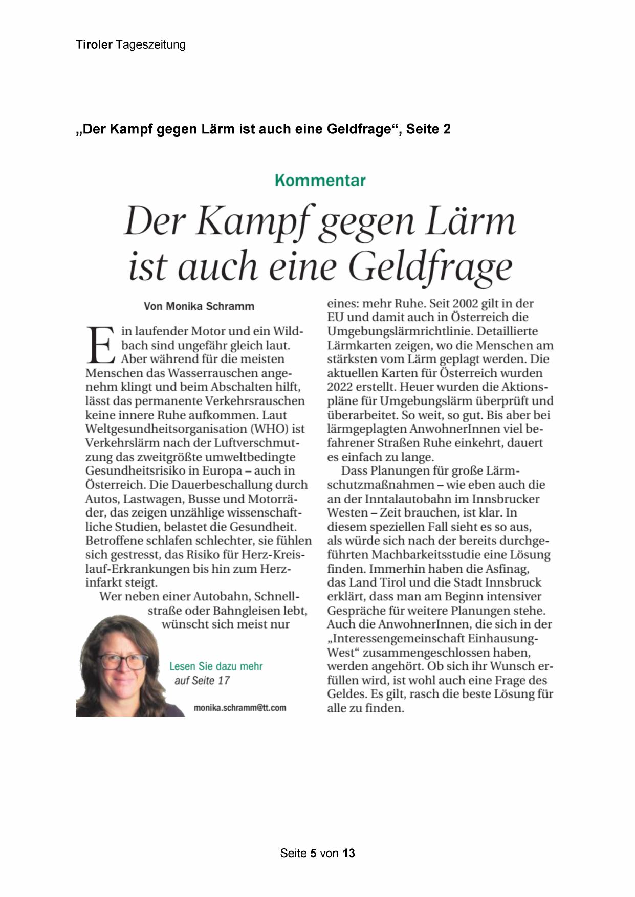 „Der Kampf gegen Lärm ist auch eine Geldfrage“, Seite 2