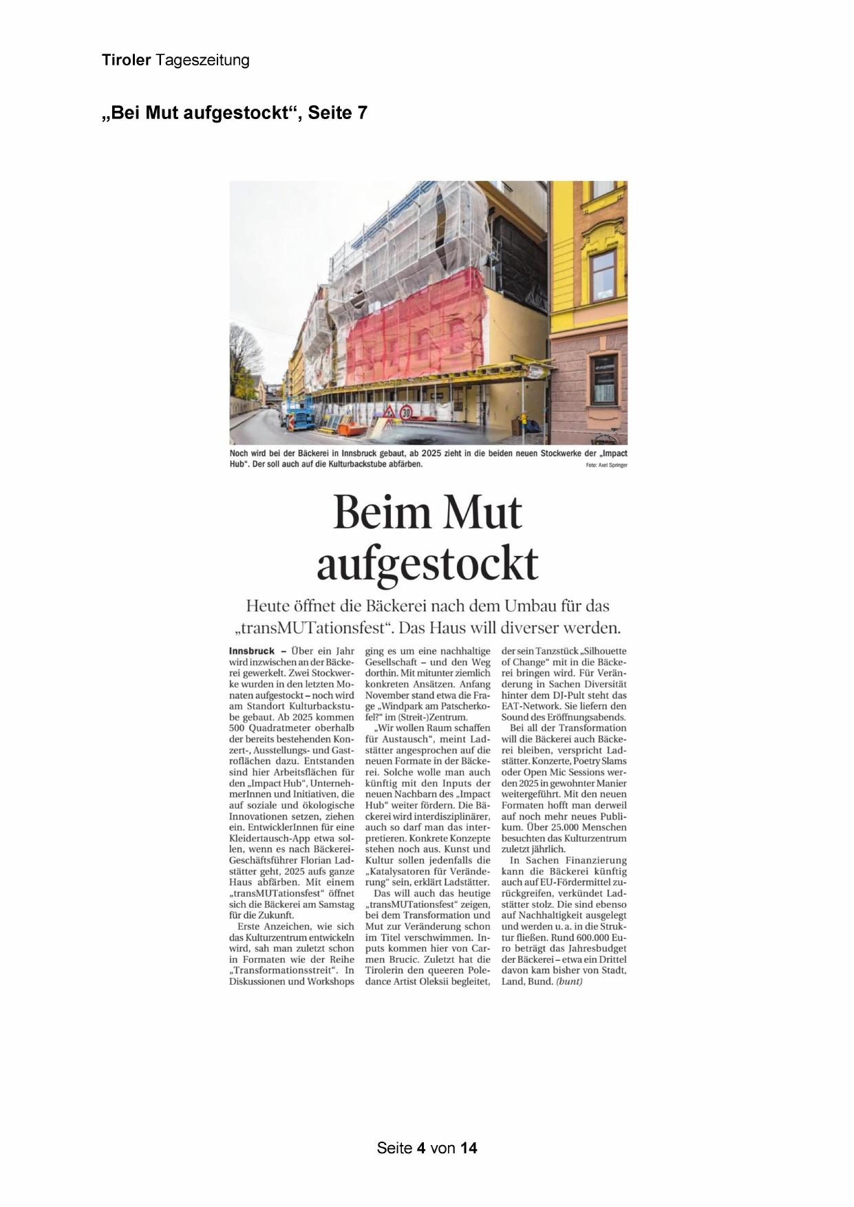 Noch wird bei der Bäckerei in Innsbruck gebaut, ab 2025 zieht in die beiden neuen Stockwerke der „Impact