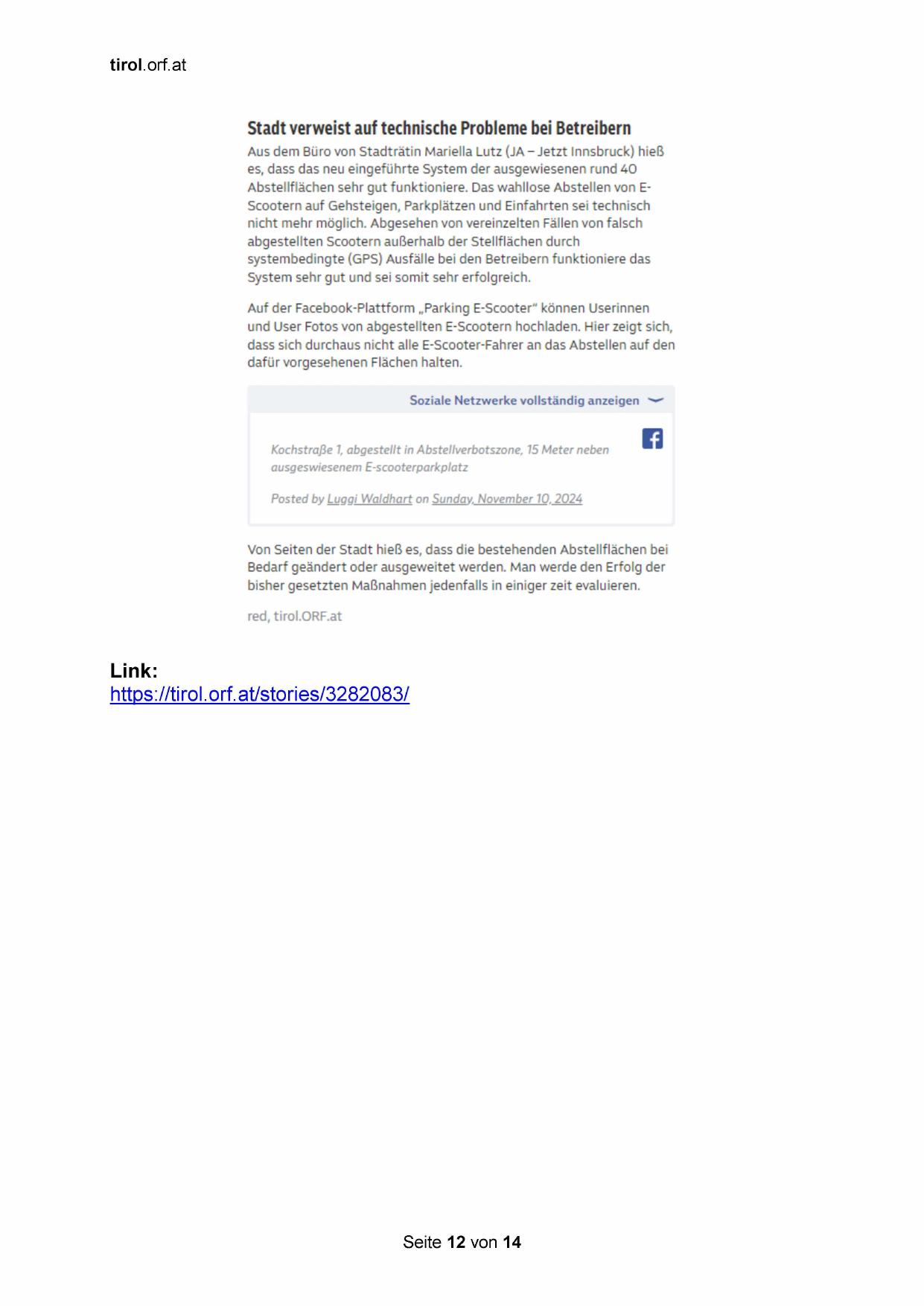 Aus dem Büro von Stadträtin Mariella Lutz (JA - Jetzt Innsbruck) hieß