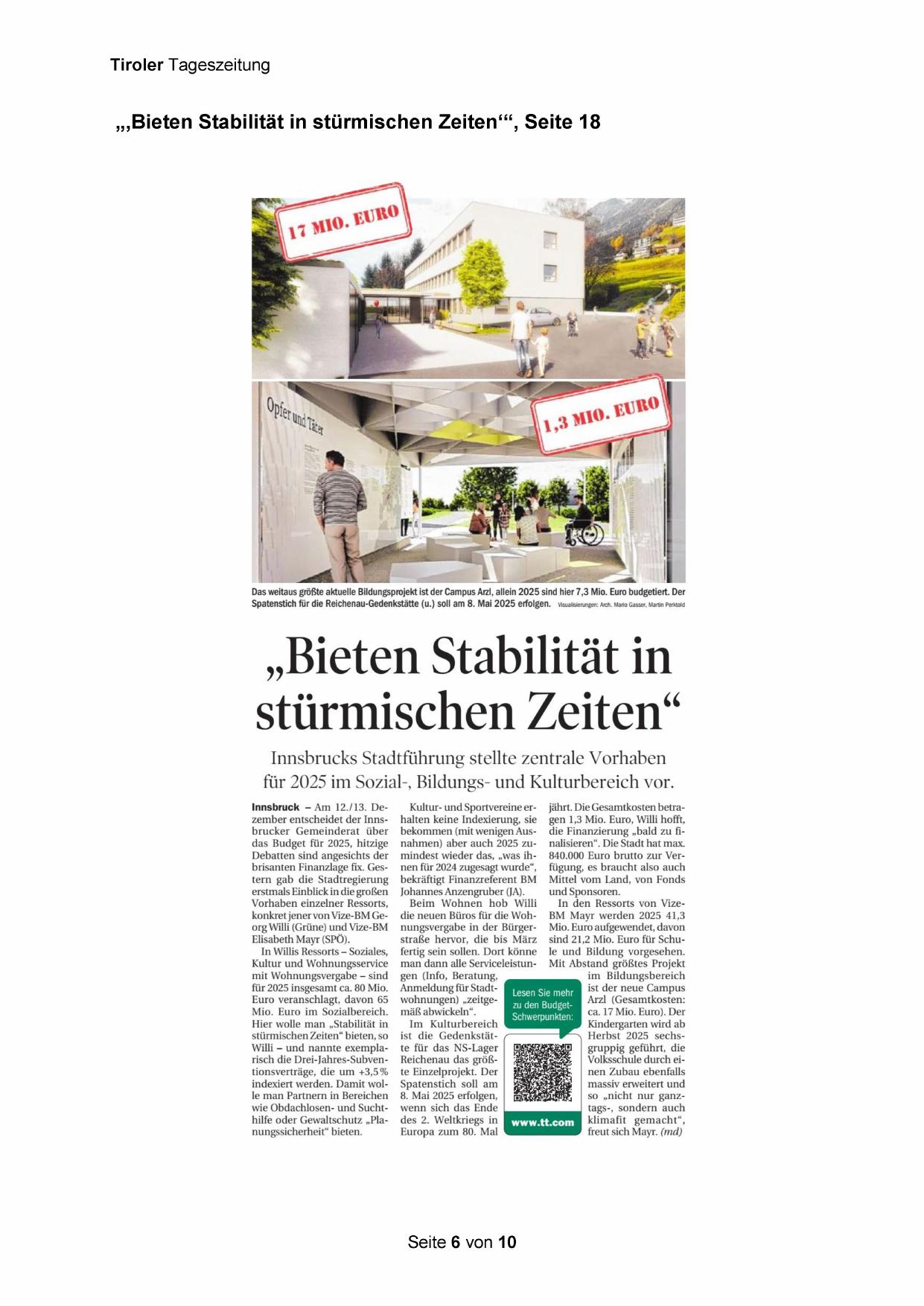 2025 sind hier 7,3 Mio. Euro budgetiert. Der