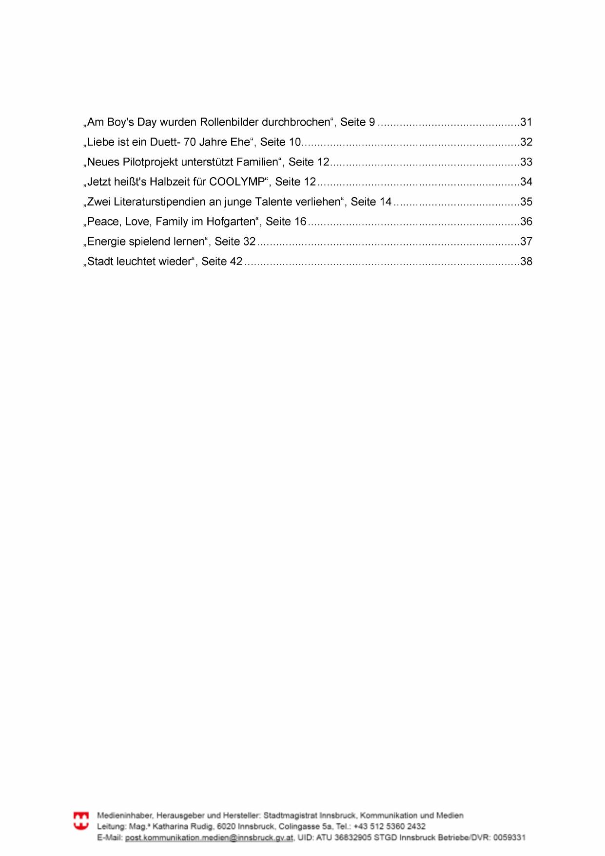 FYY Medieninhaber, Herausgeber und Hersteller: Stadtmagistrat Innsbruck, Kommunikation und Medien