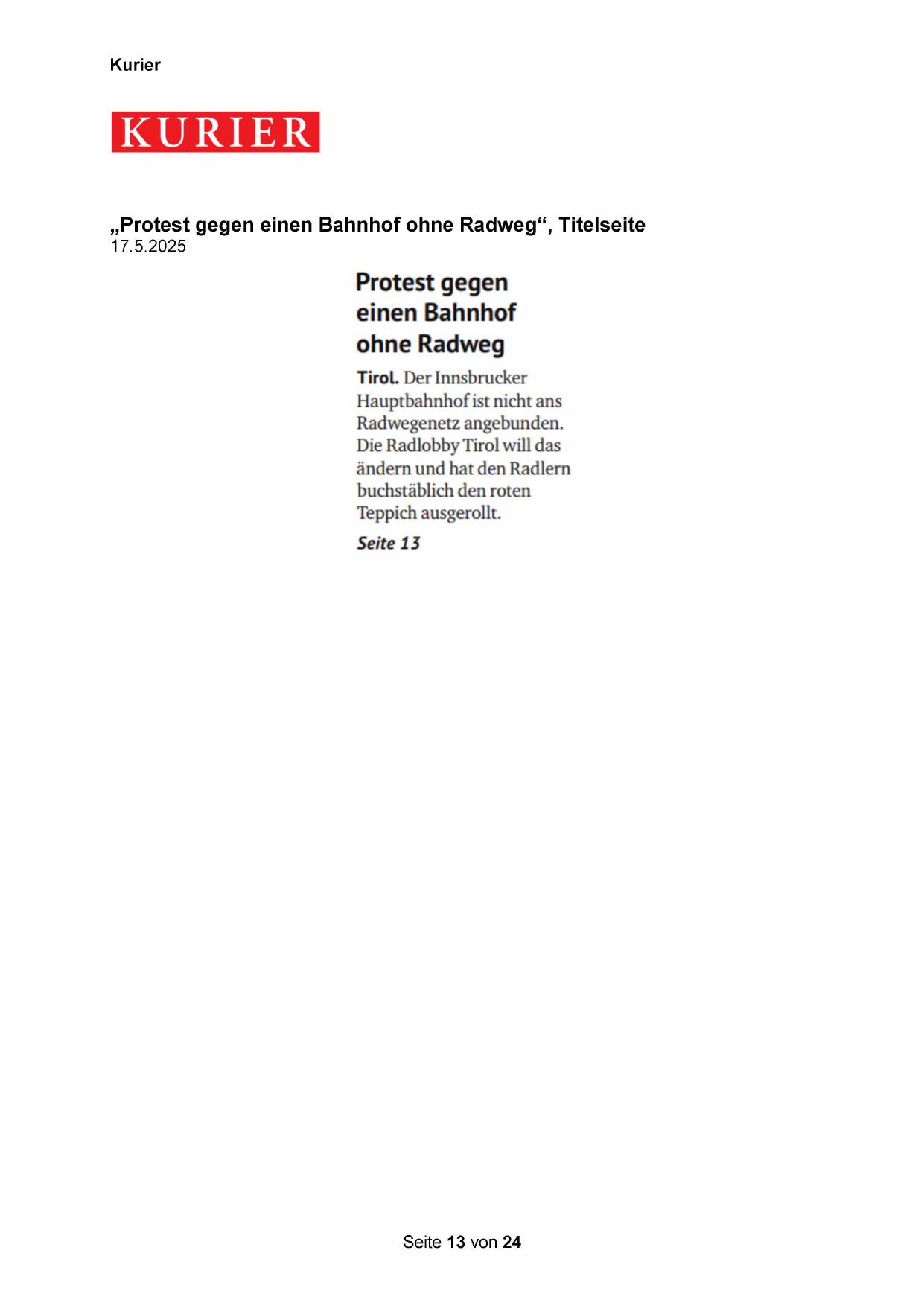 „Protest gegen einen Bahnhof ohne Radweg“, Titelseite
